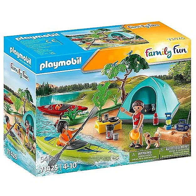 Description - A summer day at the PLAYMOBIL campsite - the family makes itself comfortable in front of the big tent, eats together and enjoys the vacation together. Camping is fun for the whole family. Kayaking, hiking and experiencing nature during the day. Sitting around the campfire in the evening, telling stories and enjoying the starry sky - wonderful! With the PLAYMOBIL playset Campsite, small and large camping fans can now re-enact their best vacation experiences at home. The set contains everything children need for a successful camping trip, two PLAYMOBIL figures, a tent, pot and pan, food, a lamp and many other great extras for long-lasting fun. In addition, there are two canoes with paddles for fun canoe trips. The charmingly designed PLAYMOBIL camping toys encourage creative role play. All sets can be played with on their own or combined with other toy sets from the PLAYMOBIL Family Fun series.