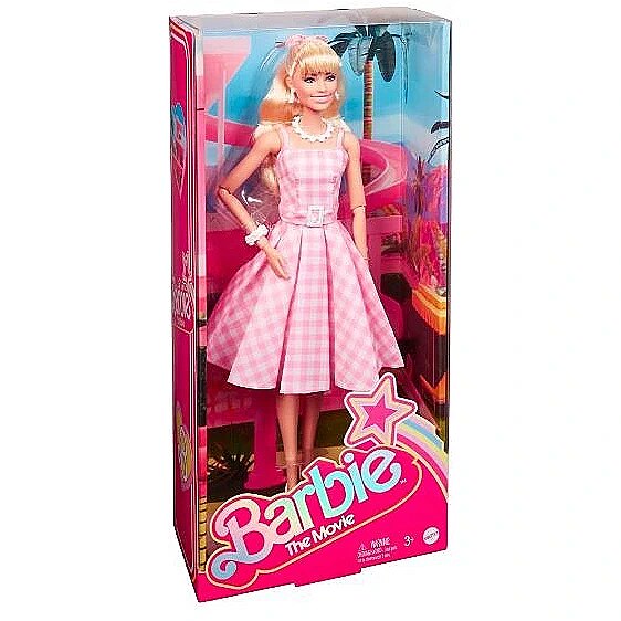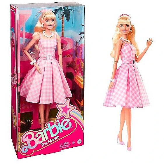 LongSummaryDescription - Barbie Signature The Movie Collectible Doll, Margot Robbie as in Pink Gingham Dress. Doll type: Fashion doll, Doll's gender: Female, Recommended age (min): 3 yr(s), Suggested gender: Boy/Girl. Height: 330.2 mm, Weight: 300 g. Material: Fabric, Plastic, Product colour: Multicolour