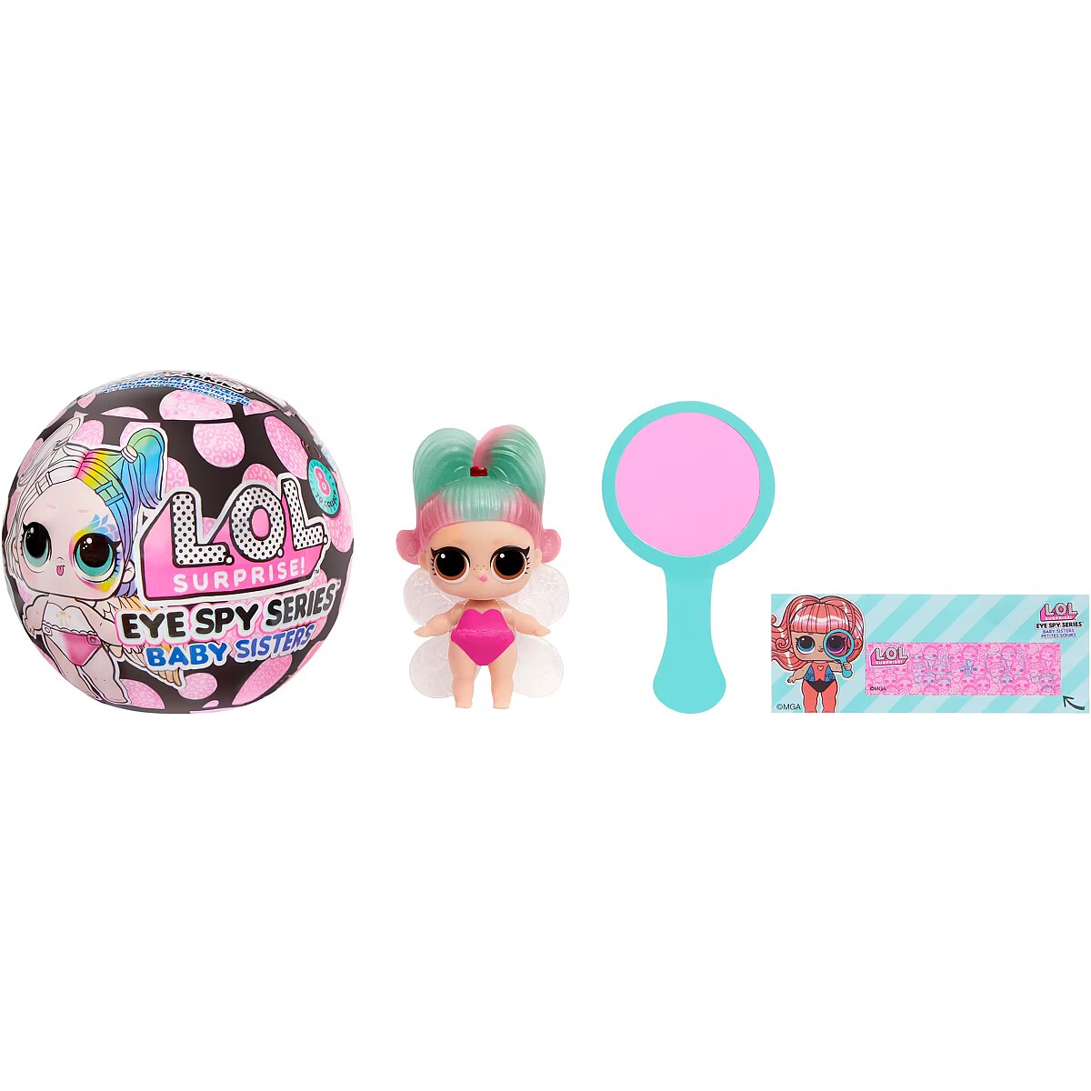 LongDesc - Get ready to make a splash with the adorable L.O.L. Surprise! Mermaids!™ Baby Sisters with color change tails! Once your Baby Sisters dolls are dressed in their stunning Mermaids tails, dip them in cold water to reveal a gorgeous color change! Discover what’s inside with fun mermaid-themed accessories. Show your Mermaids Baby Sisters dolls off and carry them around in their L.O.L. ball, which doubles as a clamshell display for your cute mermaids! Collect all 8 LOL Surprise Mermaids Baby Sisters and round out a world of play with their big sisters in the LOL Surprise Mermaids Tots collection, where you can Make A Mermaid Tail for your doll, and Mermaids Tweens, 4 NEW fashion dolls including beautiful color-changing mermaid tails!LOL Surprise collectible dolls with stylish hair, fun to dress outfits and many detailed accessory pieces make a perfect toy and playset for kids including 4- to 7-year-olds and up girls and boys for imaginative pretend play! As birthday gifts and gift for any special occasion, dolls provide hours of social play with siblings and friends! From MGA Entertainment, creators of L.O.L. Surprise!™ fashion and collectible dolls, Miniverse™ dolls, Rainbow High™ fashion dolls, Na Na Na Surprise dolls, Bratz® fashion dolls, MGA's Dream Ella™, MGA's Glitter Babyz™, Lalaloopsy™, Baby Born® Surprise baby dolls and collectibles, Little Tikes® kids' toys and many other favorite brands.