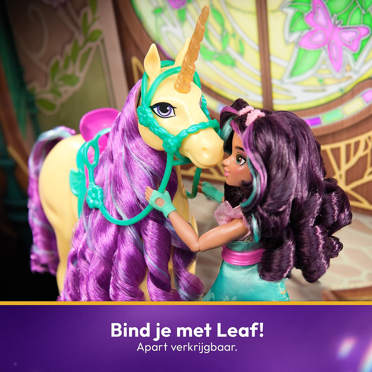 LongDesc - Create enchanting Unicorn Academy adventures at home with Sophia, Ava, and Isabel fashion dolls. Inspired by the NETFLIX animated show and best-selling book series where friendship reins, these 9.5-inch dolls for girls bring the characters to life. Beautifully detailed from head to toe, Ava’s bubbly personality comes through in her highlighted hair (styling accessory included) and her signature unicorn rider outfit: pink and teal petal dress, ombre pants with Plant Magic markings, floral boots and hair clips, gloves, and butterfly belt doll accessories. With 9 points of articulation, pose Ava as you protect Unicorn Island and its magic, and ride into adventure with her unicorn, Leaf (sold separately). The magical bonds between Unicorn Academy students and their unicorns will spark endless imaginative storytelling. For more ways to experience Unicorn Academy with your favorite characters, look for Sophia and Isabel dolls and their unicorns, Rainbow Light-up Wildstar and River (each sold separately) and expand your world. For kids who enjoy unicorns and horse toys, dolls & accessories, doll house play, collectibles, plush toys and more, Unicorn Academy toys are fun birthday gifts for girls or gifts for any occasion. Bring home the magic of Unicorn Academy with the Ava Doll.Includes: 1 Doll, 7 Removable Fashion Pieces, 1 Hair Styling Tool