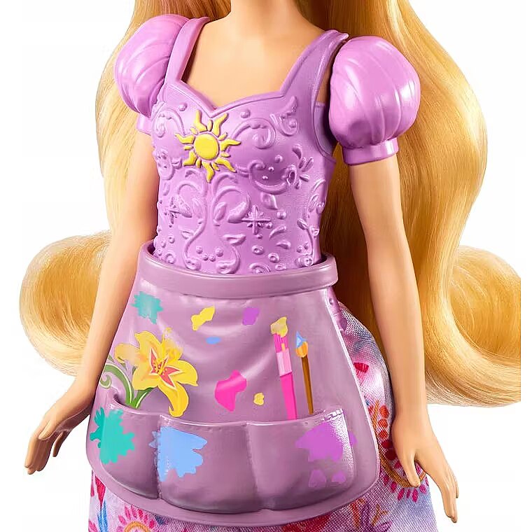 LongDesc - Disney Princess 2-in-1 Stories Rapunzel fashion doll set is inspired by favourite moments from Disney's Tangled! Posable Rapunzel doll features two distinct looksgoing on a picnic or spending a day making artand include two easy-to-use, snap-on bodices; two soft skirts; and nine themed accessories. It's the perfect gift for Disney fans eager for more Rapunzel stories! Doll cannot stand alone. Colours and decorations may vary.