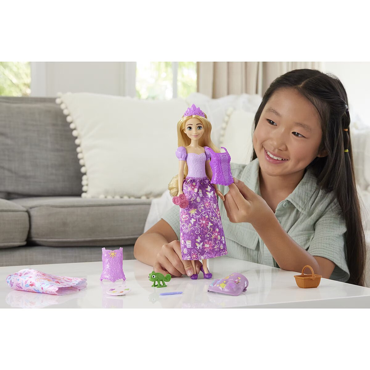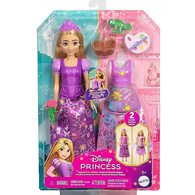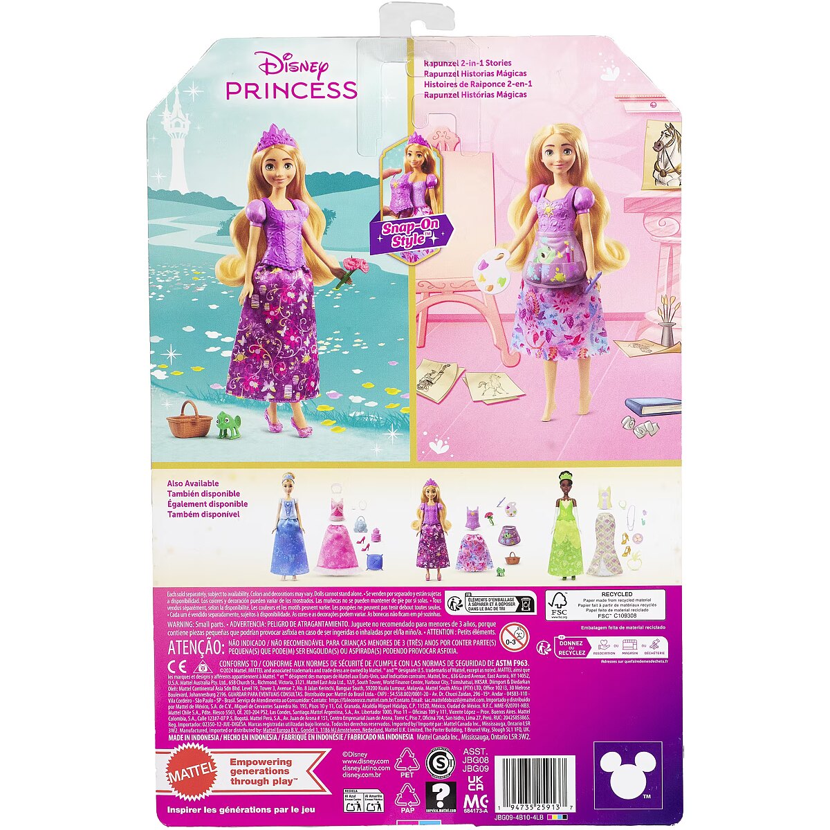 Description - Disney Princess 2-in-1 Stories Rapunzel fashion doll set is inspired by favorite moments from Disney's Tangled! Posable Rapunzel doll features two distinct looksgoing on a picnic or spending a day making artand include two easy-to-use, snap-on bodices; two soft skirts; and nine themed accessories. It's the perfect gift for Disney fans eager for more Rapunzel stories! Doll cannot stand alone. Colors and decorations may vary. Disney Princess 2-in-1 Stories Rapunzel fashion doll set has themed fashions and accessories for kids to play out two unique stories! This easy-to-dress Rapunzel doll comes with two bodices that snap on and off and two skirts printed with icons from her stories. Kids can get Rapunzel doll ready for a picnic or have her spend the day creating art! Doll is posable and has long brushable hair and a tiara, plus 8 more themed accessories to tell each story from beginning to end. Fans can also look for 2-in-1 Stories Tiana and Cinderella dollsor collect them all for the ultimate in storytelling fun! Each sold separately, subject to availability.
