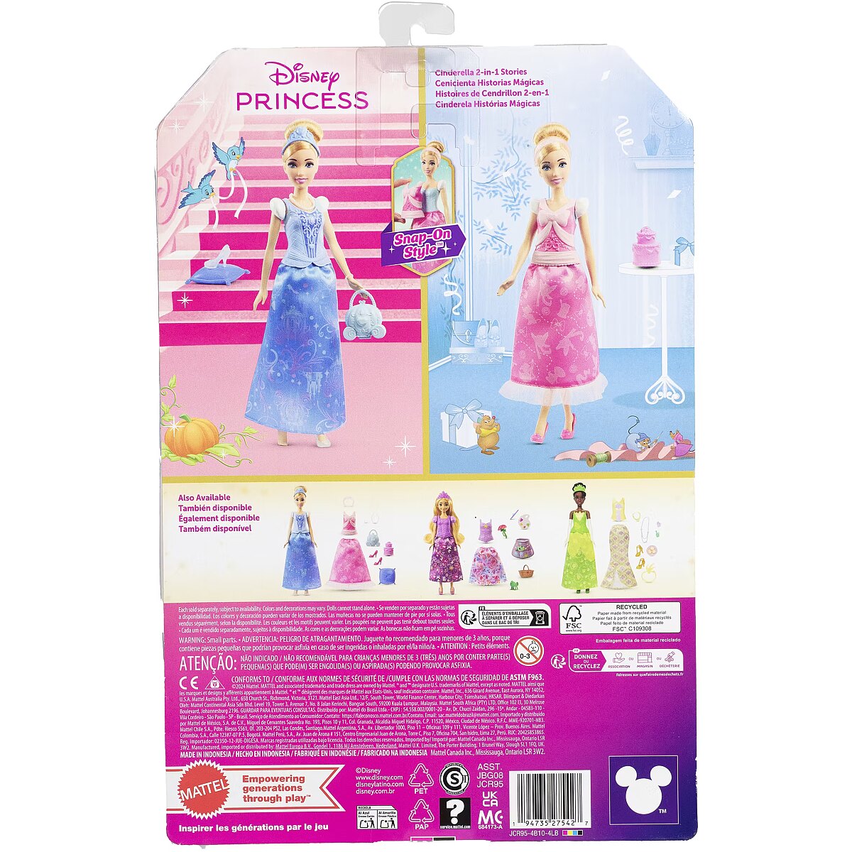 ShortSummaryDescription - Disney Princess 2-in-1 Stories Cinderella Fashion Doll with 2 Snap-On Bodices, 2 Skirts & 9 Accessories, Fashion doll, Female, 3 yr(s), Boy/Girl, 293 mm, 40 g