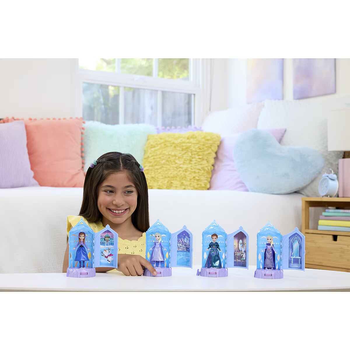 Description - Wymyślaj mroźne przygody wprost z Krainy Lodu Disneya z zestawami do zabawy Lodowy Pałacyk Obrotowa niespodzianka! Otwórz wrota miniaturowego pałacu, aby odkryć obracającą się uroczą małą lalkę inspirowaną animowaną postacią z serii filmowej Kraina Lodu Disneya. Obrotową zabawę możesz powtarzać wciąż od nowa, otwierając i zamykając wrota lub używając pokrętła. Stwórz własną krainę wyobraźni, łącząc tę zabawkę z innymi zestawami z serii Storytime Stackers (nie znajdują się w zestawie), i ruszaj ku wymarzonym przygodom! Każdy zestaw z lalką jest sprzedawany oddzielnie, zależnie od dostępności. Lalki nie stoją samodzielnie. Kolory i elementy dekoracyjne mogą się różnić. Produkt wysyłany losowo, brak możliwości wyboru konkretnego modelu. Cena dotyczy jednej sztuki.