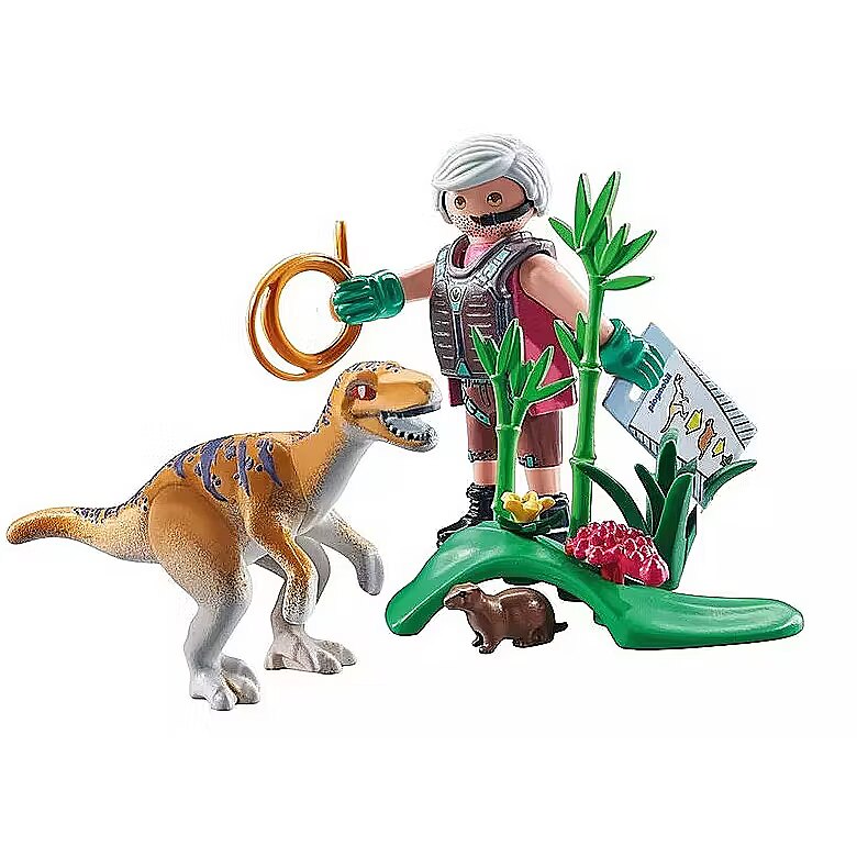Description - Niebezpieczny Welociraptor poluje na małego gryzonia, który umiejętnie ukrywa się w kopcu ziemi. Podczas gdy badacz dinozaurów powstrzymuje się przed interwencją w zachowanie gada, dokumentuje urzekający spektakl naturalnego łańcucha pokarmowego. Przed ewentualnymi atakami Welociraptora chroni go stabilny napierśnik. Zestaw zawiera kartę wiedzy o dinozaurach. Wyrusz do ekscytującego świata dinozaurów z zestawem PLAYMOBIL Welociraptor! Zwinny welociraptor z precyzją poluje na gryzonie. Badacz, wyposażony w mapę i lasso, rejestruje każdy moment z życia tego prehistorycznego gada. W zestawie znajdziesz ciekawą roślinność. Dowiedz się więcej o dinozaurach dzięki dołączonej karcie wiedzy. Wykonany w ponad 80% z ekologicznych materiałów pochodzących z recyklingu i materiałów pochodzenia biologicznego, zestaw PLAYMOBIL oferuje niekończące się prehistoryczne przygody dla ciekawskich maluchów!