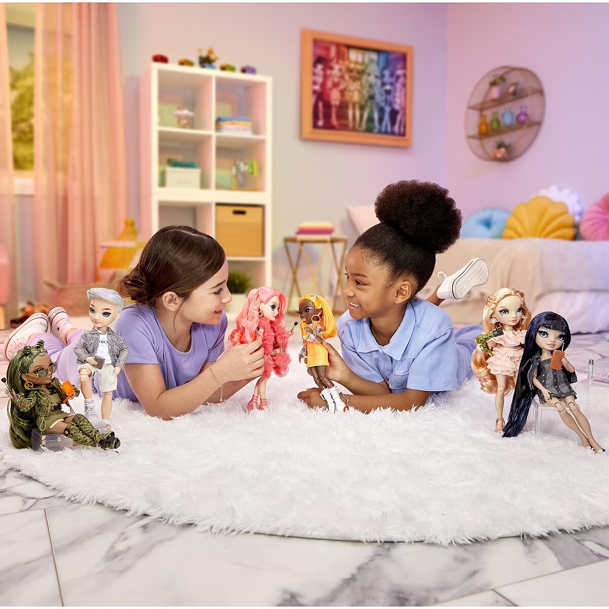 Description - Rainbow means unlimited color possibilities! Among the new students, you'll find 5 gorgeous dress-up dolls and 1 fashionable boyfriend that represent even more shades of the rainbow. Each of them has a unique style, which can be seen in their outfits and many fashionable accessories! And when placed together, they create a stunning rainbow. Collect a full rainbow!