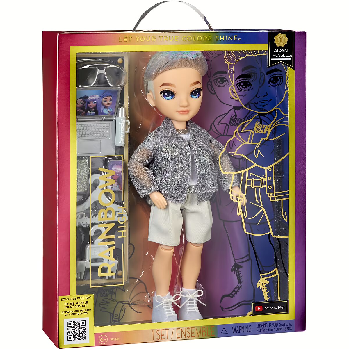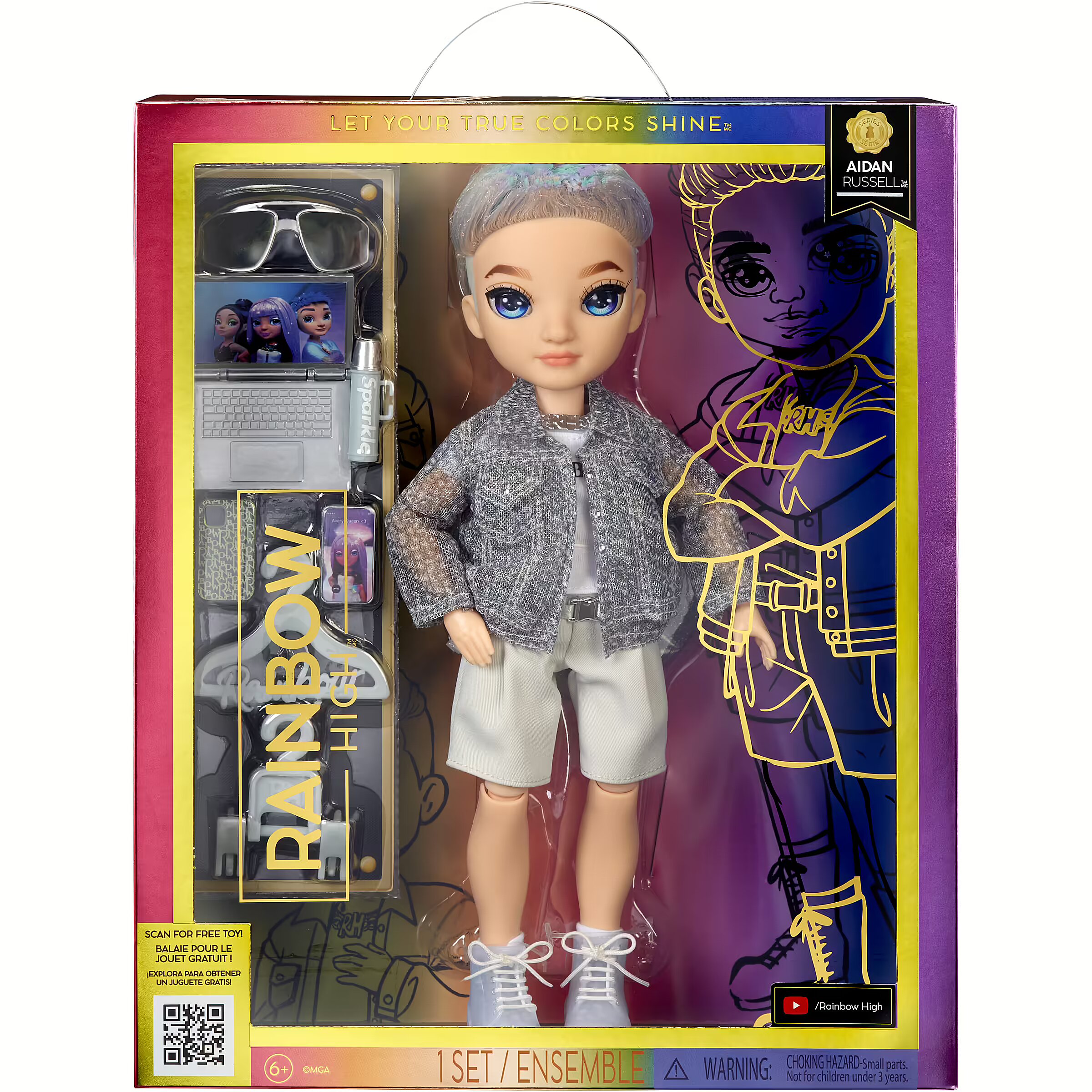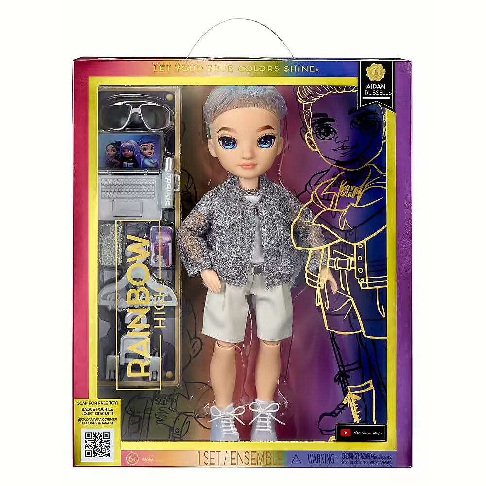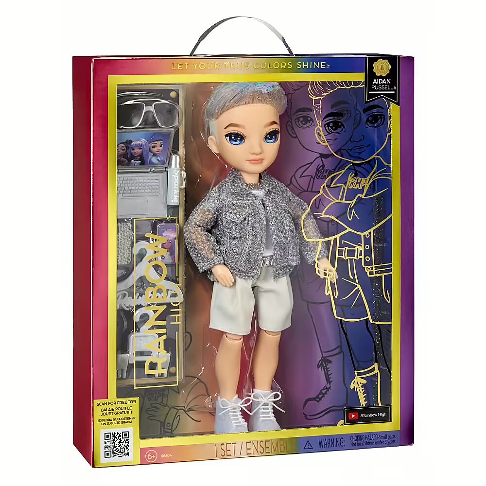 ShortSummaryDescription - Rainbow High Purple Fashion Doll- Aidan Russell, Fashion doll, Male, 4 yr(s), Boy/Girl, Multicolour