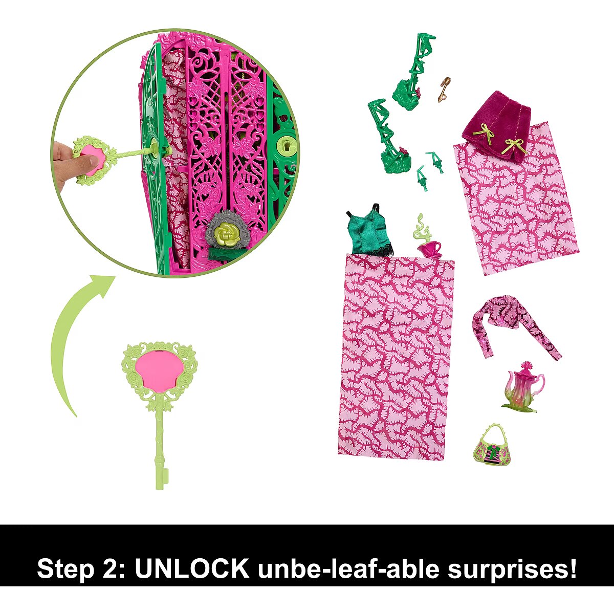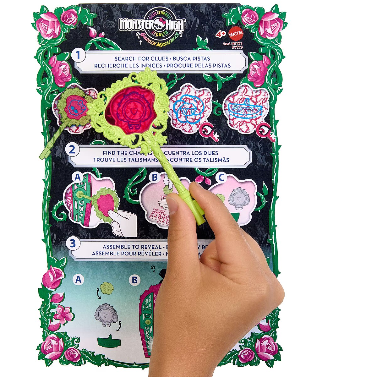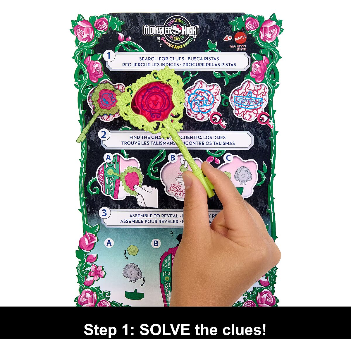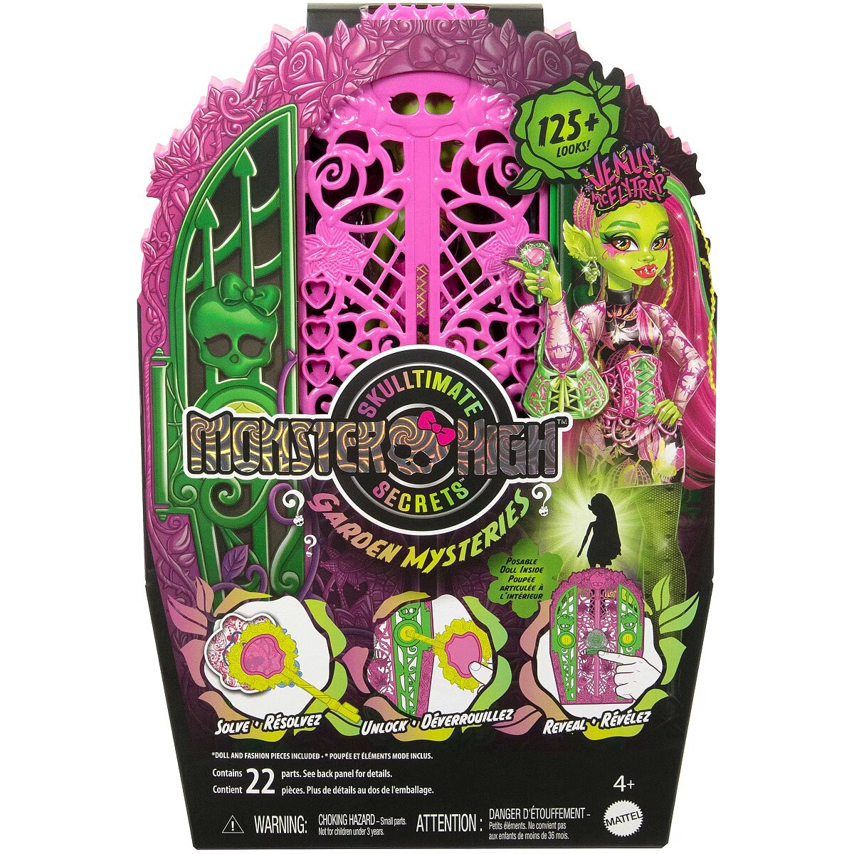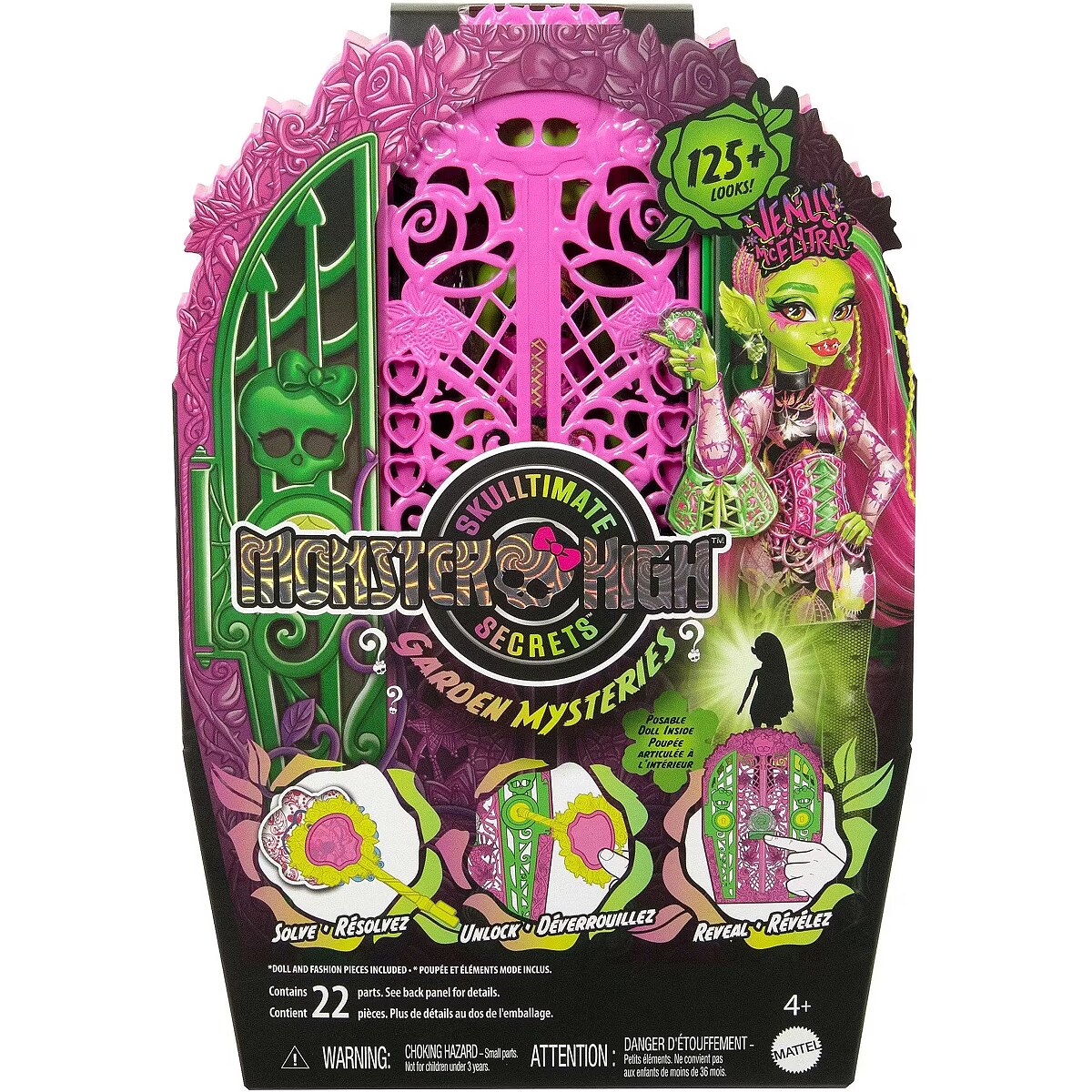 LongDesc - Solve the mystery, unlock the gates of Monster High, and reveal a Monster High doll with Skulltimate Secrets: Garden Mysteries! Kids can play spooky detective by searching for clues on the map with the 'magic' magnifying glass key. Along the way they'll discover 19+ suprises for an extraordin-eerie unboxing experience! Once playtime is over, kids ages 4 years old and up can stow the included doll, clothing, and accessories inside the creeperific closet, which is perfect for both storytelling and storage! Each sold separately, subject to availability. Fully articulated. Dolls cannot stand alone. Colours and decorations may vary.