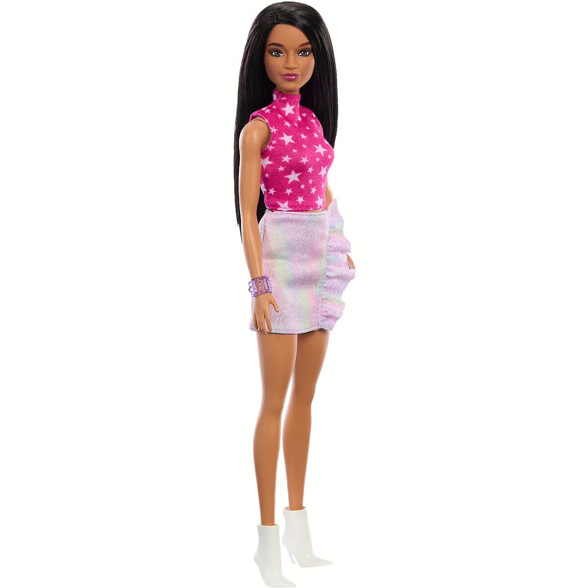 LongDesc - Commemorating 65 years of iconic fashion and signature style, Barbie Fashionistas dolls celebrate diversity and offer endless possibilities for storytelling and fashion exploration. With an inclusive range of looks, kids can see how fun it is to express personality through style! And featuring today's coolest trends, Barbie dolls make an ideal gift for fashion-loving kids everywhere. Each sold separately, subject to availability. Dolls cannot stand alone. Colours and decorations may vary.