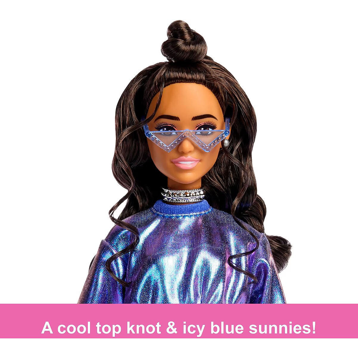 Mattel Barbie Barbie Deluxe Style in blue metallic outfit, doll