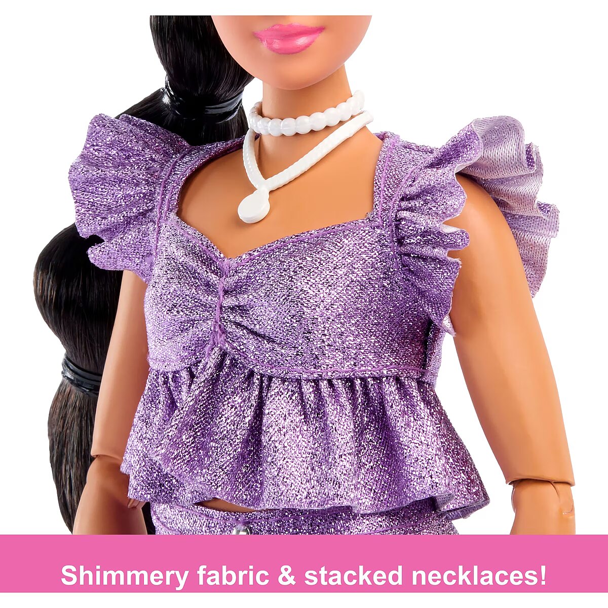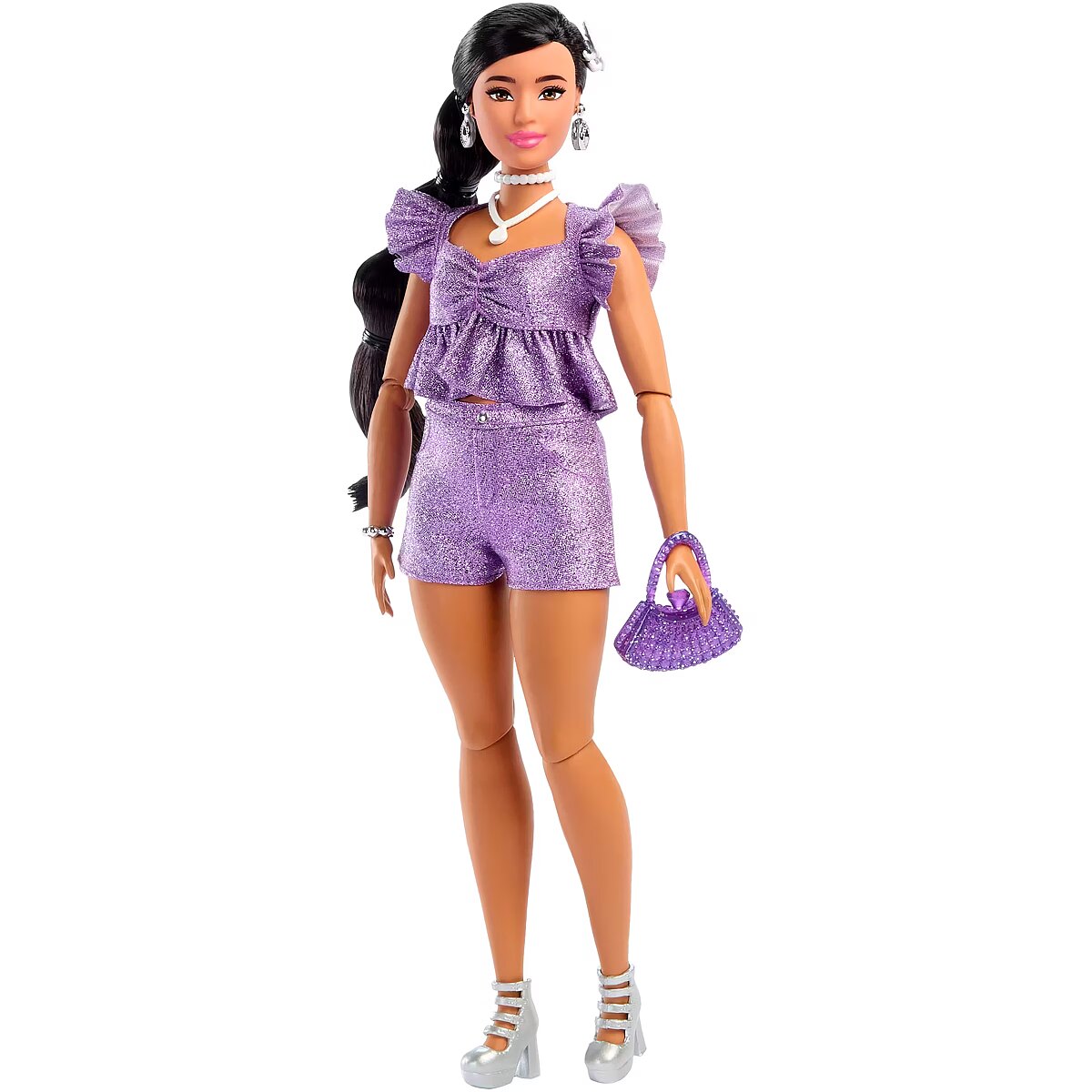 LongProductName - Barbie Deluxe Style Fashion Doll #8 in Metallic Purple Top and Sparkly Shorts with Accessories