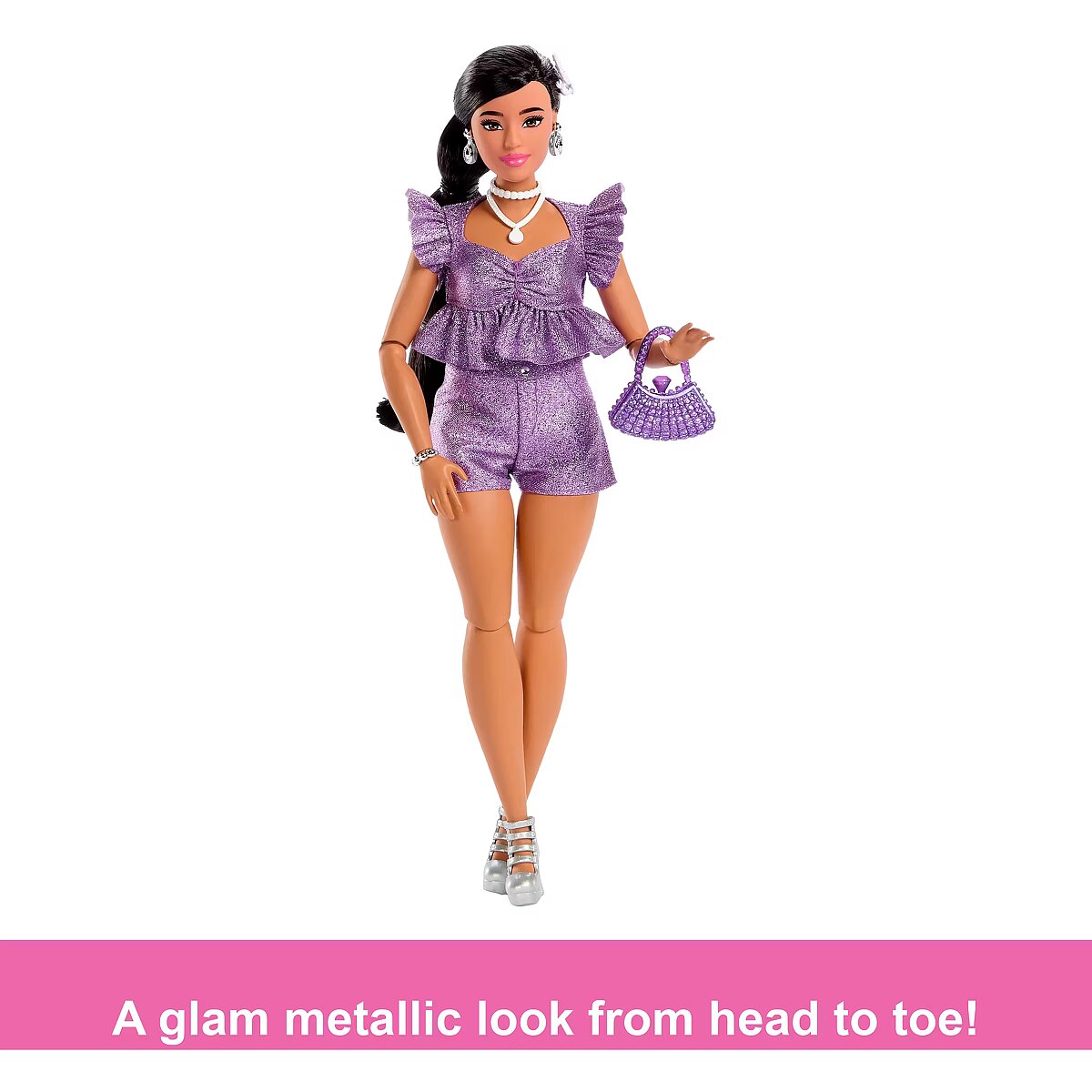Mattel Barbie Barbie Deluxe Style in purple metallic outfit, doll