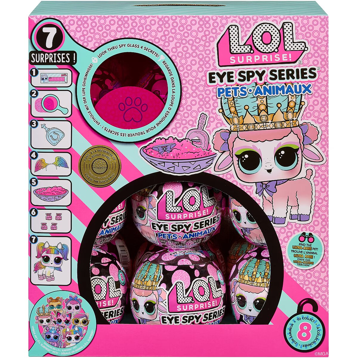 LongSummaryDescription - L.O.L. Surprise! L.O.L. Surprise Eye Spy Pets Asst in PDQ. Doll type: Mini doll, Doll's gender: Female, Recommended age (min): 4 yr(s), Suggested gender: Boy/Girl, Material: Plastic, Product colour: Assorted colours