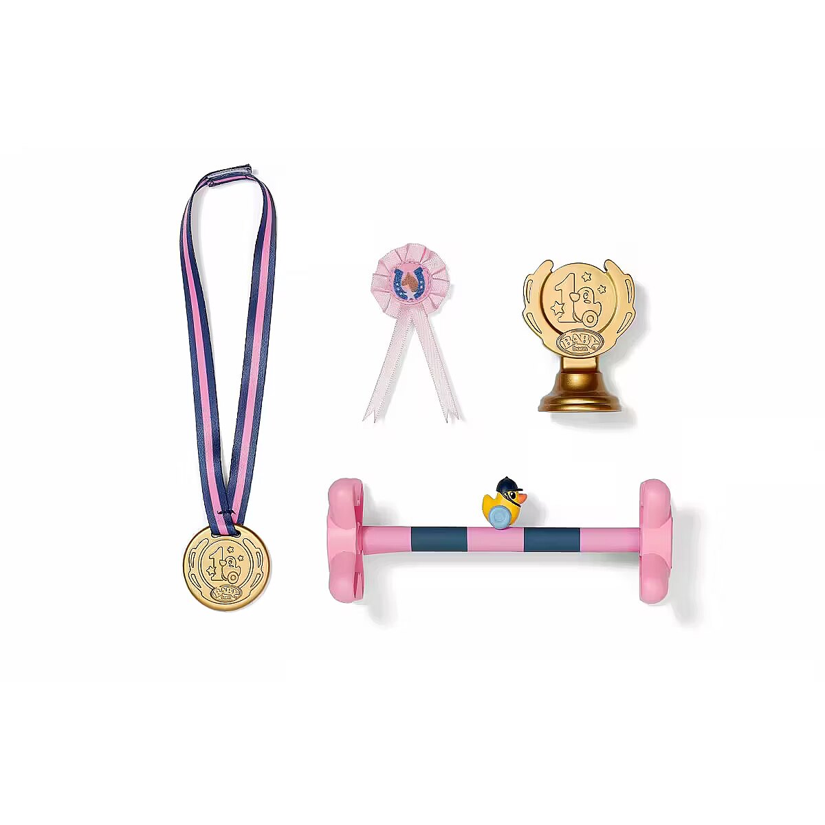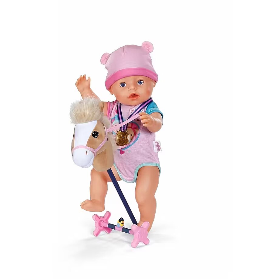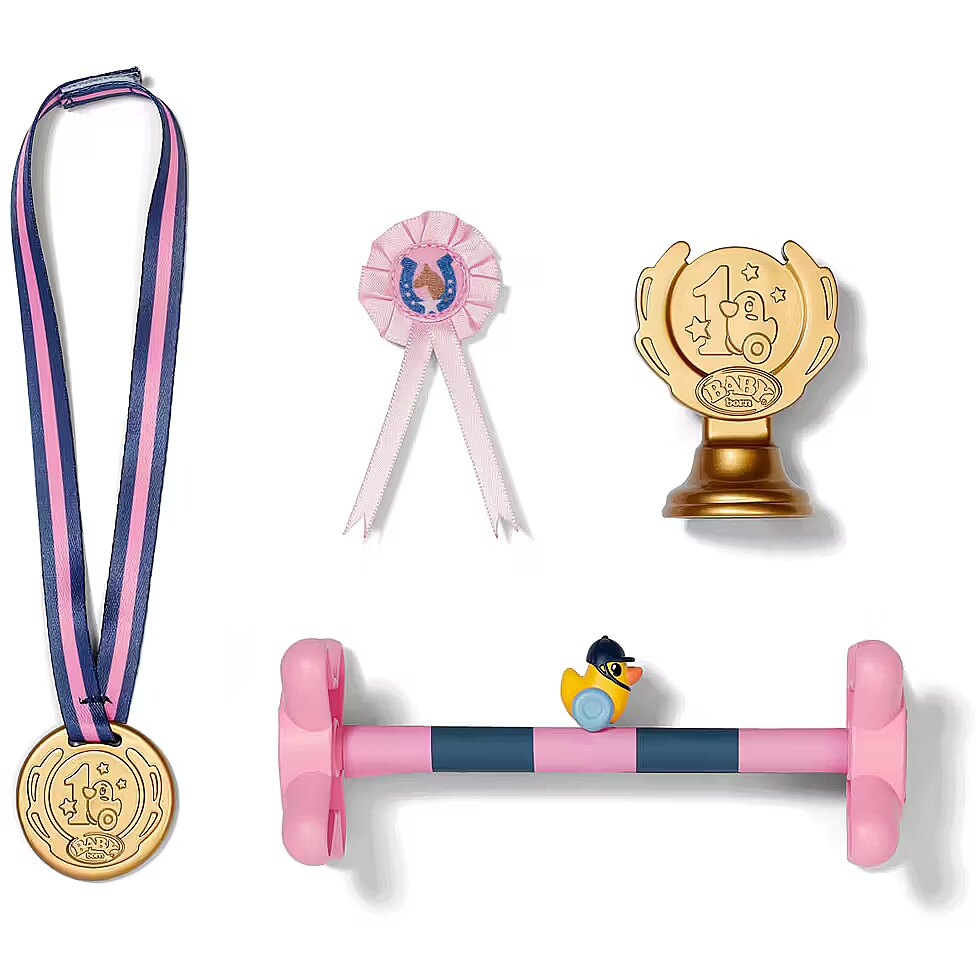 LongDesc - With this set, BABY born Emma can also take part in the trendy hobby of horsing. The hobby horse is ideal for little riding fans who want to take their doll with them on a ride. A small obstacle with Berta the duck, a medal to hang around for dolls, as well as a horse medal to pin on the horse harness and a winner's trophy complete the hobby horsing game perfectly.