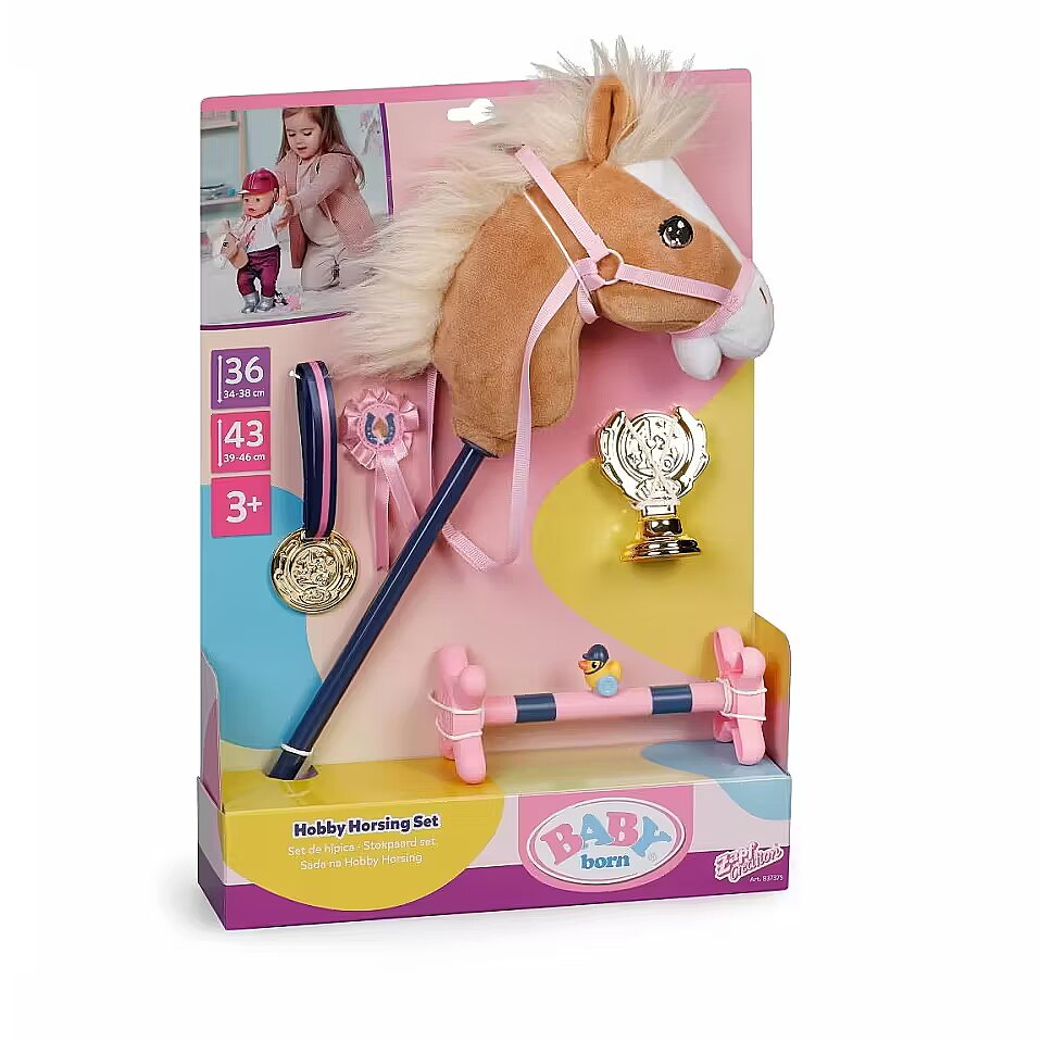 Description - BABY born Hobby Horsing Set - zestaw stworzony z myślą o małych miłośnikach koni, który wprowadza ruch i wyobraźnię do zabawy. W jego skład wchodzi uroczy konik na patyku z miękką pluszową główką, idealny do trzymania w małych rączkach, oraz przeszkoda do skoków z kaczuszką Bertą, umożliwiająca zabawę w skoki i różnorodne ćwiczenia. Dodatkowo zestaw zawiera dwa medale i puchar dla zwycięzcy, co dodaje emocji prawdziwego turnieju i rozwija ducha rywalizacji podczas odgrywania ról. Zestaw pasuje do wszystkich lalek BABY born o wysokości 36 cm i 43 cm, zapewniając jeszcze więcej możliwości interaktywnej zabawy. BABY born Hobby Horsing Set to gwarancja długotrwałej frajdy i wysokiej jakości, na którą marka BABY born cieszy się zaufaniem od 1991 roku.