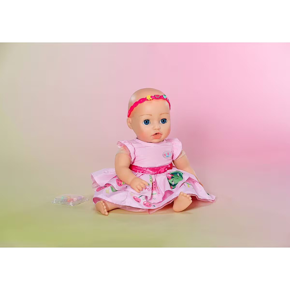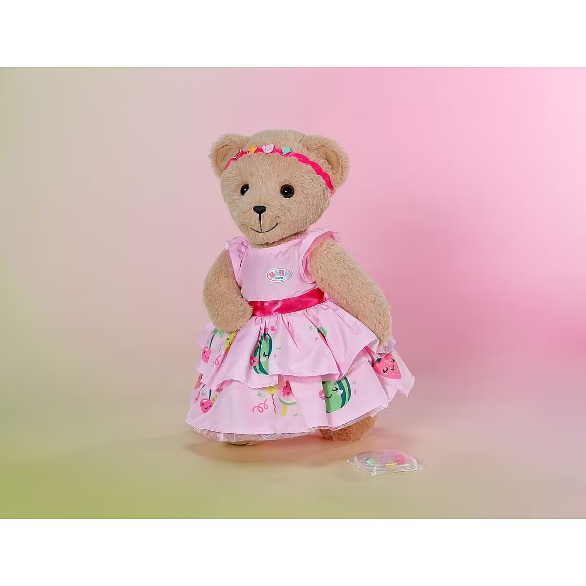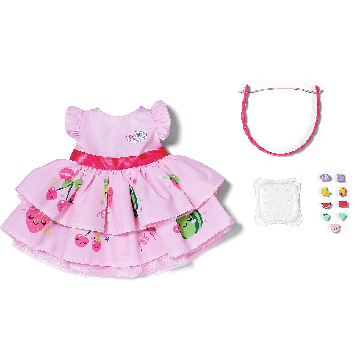 LongDesc - This dreamy pink dress with bright pink design, comes with a headband that can be customized with the pins included. The pins can be flexibly attached to the headband and thus offer a wide range of styling options. The pins come in a practical box for storing, so that little doll parents can try out new looks at any time. Perfect for imaginative fashion ideas!For 43cm dolls. Suitable for children aged 3+. Doll not included.