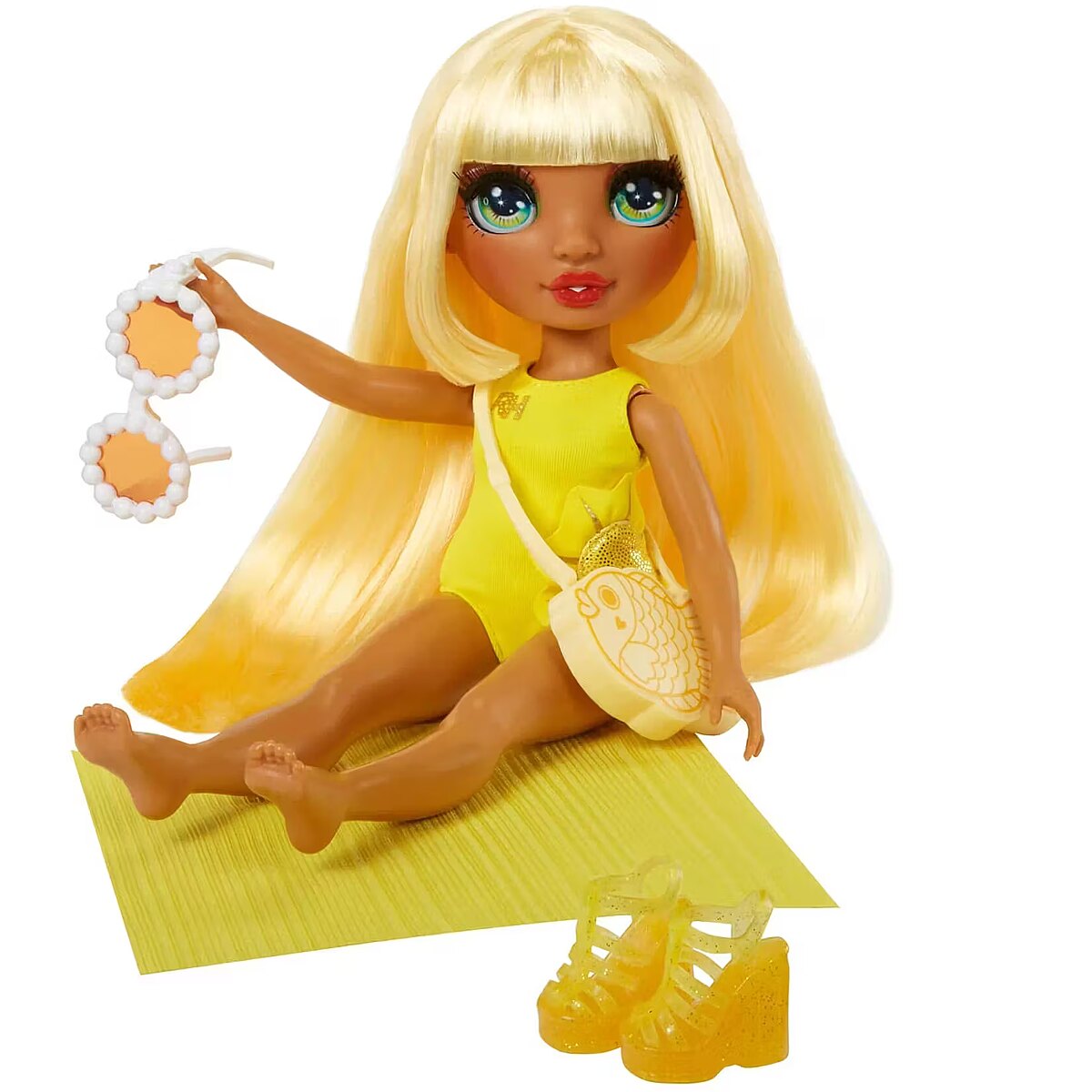 LongProductName - Rainbow High Swim & Style Sunny (Yellow) 11” Doll with Shimmery Wrap to Style 10+ ways, Removable Swimsuit, Sandals, Fun Play Accessories. Kids Toy Gift Ages 4-12 Years