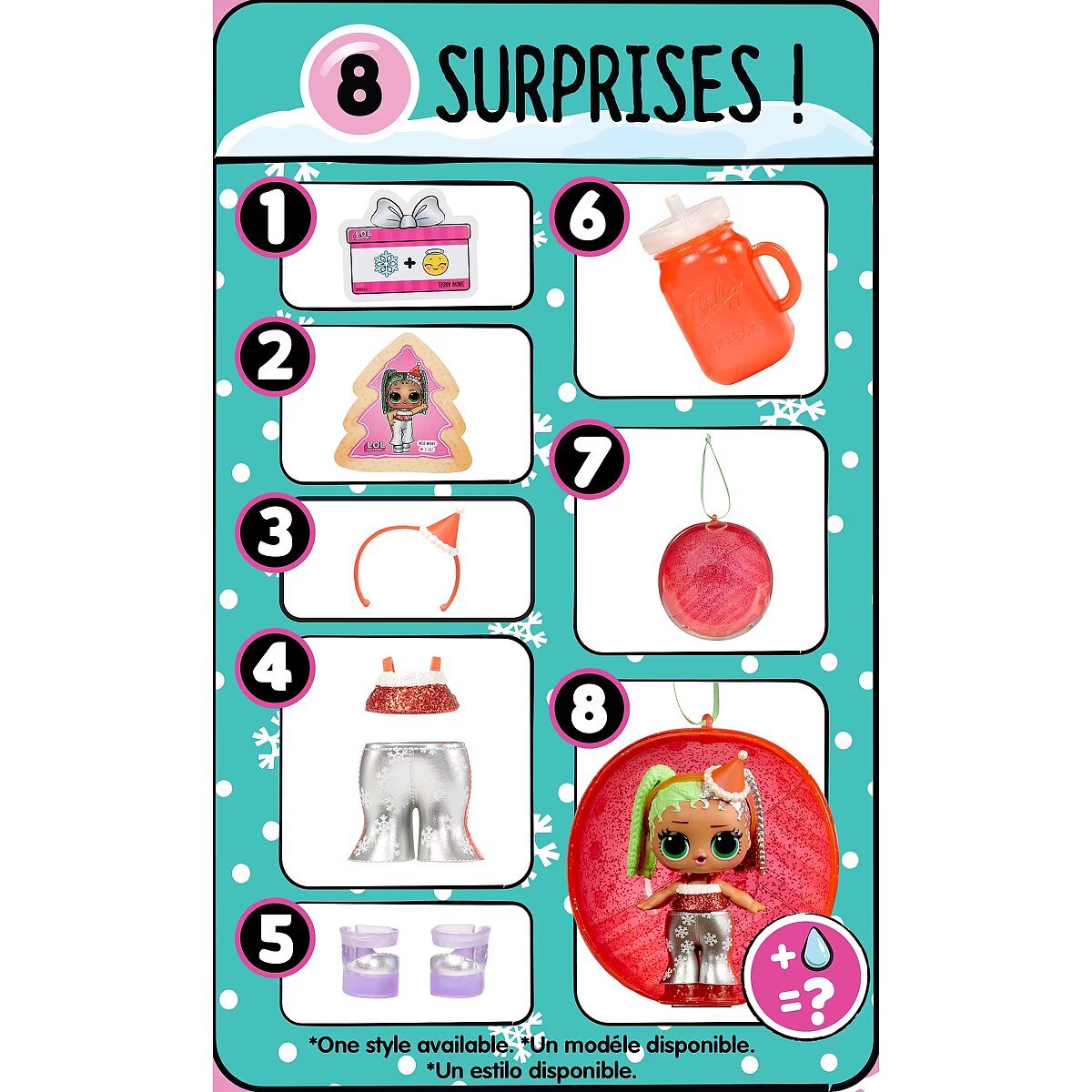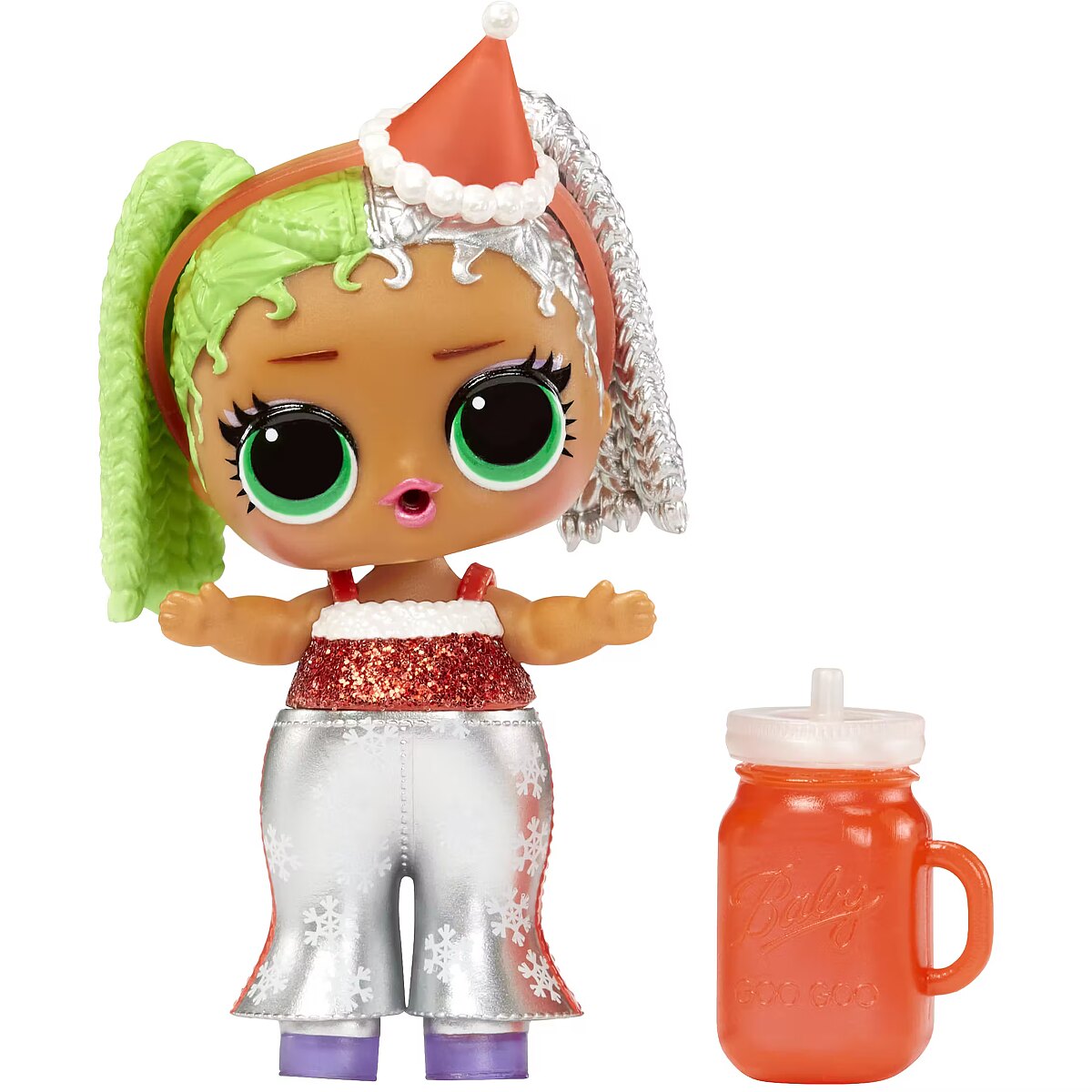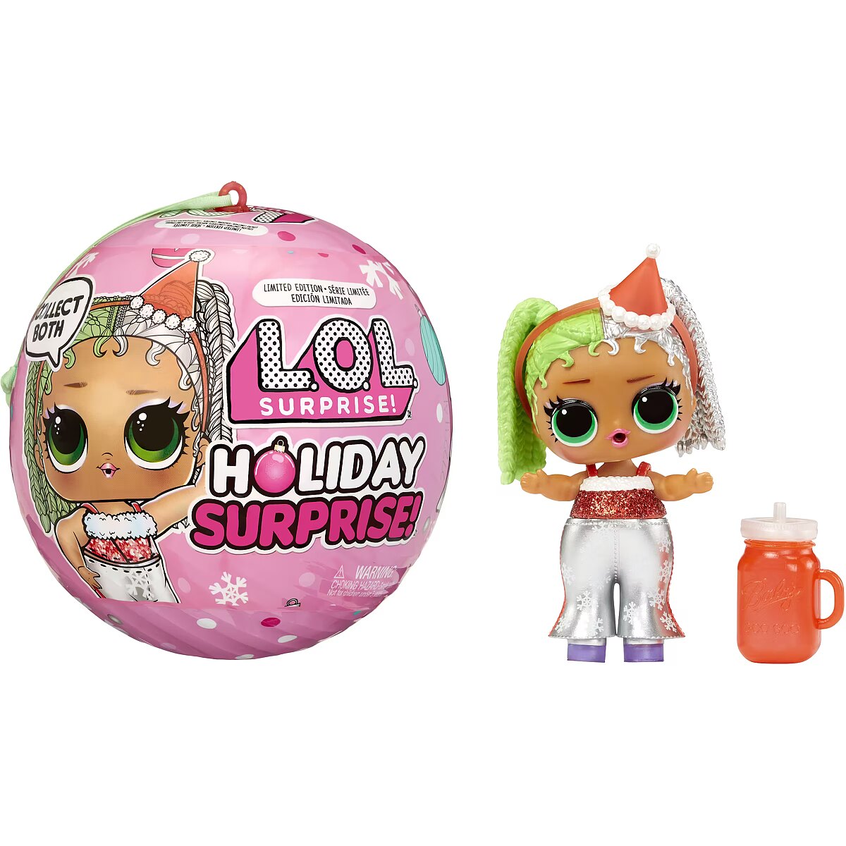 LongDesc - Introducing L.O.L. Surprise! Holiday Surprise™ - Miss Merry! Miss Merry is ready to celebrate her favorite winter holidays in style! Both Baking Beauty and Miss Merry love gift shopping for their besties, sipping hot cocoa, and making snow angels! Miss Merry is ready to ring in the new year in glittery style with sparkling fashions, shoes, bottle, accessories, ornament ball, sticker, and secret message! Miss Merry comes with a water surprise! Will yours spit, cry, or tinkle? Feed them to find out! Includes: (1) 1 Limited edition L.O.L. Surprise! Holiday Present Surprise™ doll; (2) Outfit; (3) Shoes; (4) Bottle; (5) Accessory; (6) Sticker; (7) Secret Message; (8) Ornament Ball. LOL Surprise collectible dolls with stylish hair, fun to dress outfits and many detailed accessory pieces make a perfect toy and playset for kids including 4- to 7-year-olds and up girls and boys for imaginative pretend play! As birthday gifts and gifts for any special occasion, dolls provide hours of social play with siblings and friends! From MGA Entertainment, creators of Bratz® fashion dolls, LOL Surprise and LOL Surprise OMG fashion and collectible dolls and pets, Rainbow High™ posable fashion dolls, Mermaze Mermaidz™ mermaid dolls with color change, MGA's Miniverse™, Na Na Na Surprise dolls, MGA's Dream Ella™ fashion fairy princess and unicorn dolls, MGA's Glitter Babyz™, Lalaloopsy™, Baby Born® Surprise baby dolls and collectibles, Little Tikes® kids' toys and many other favorite brands.