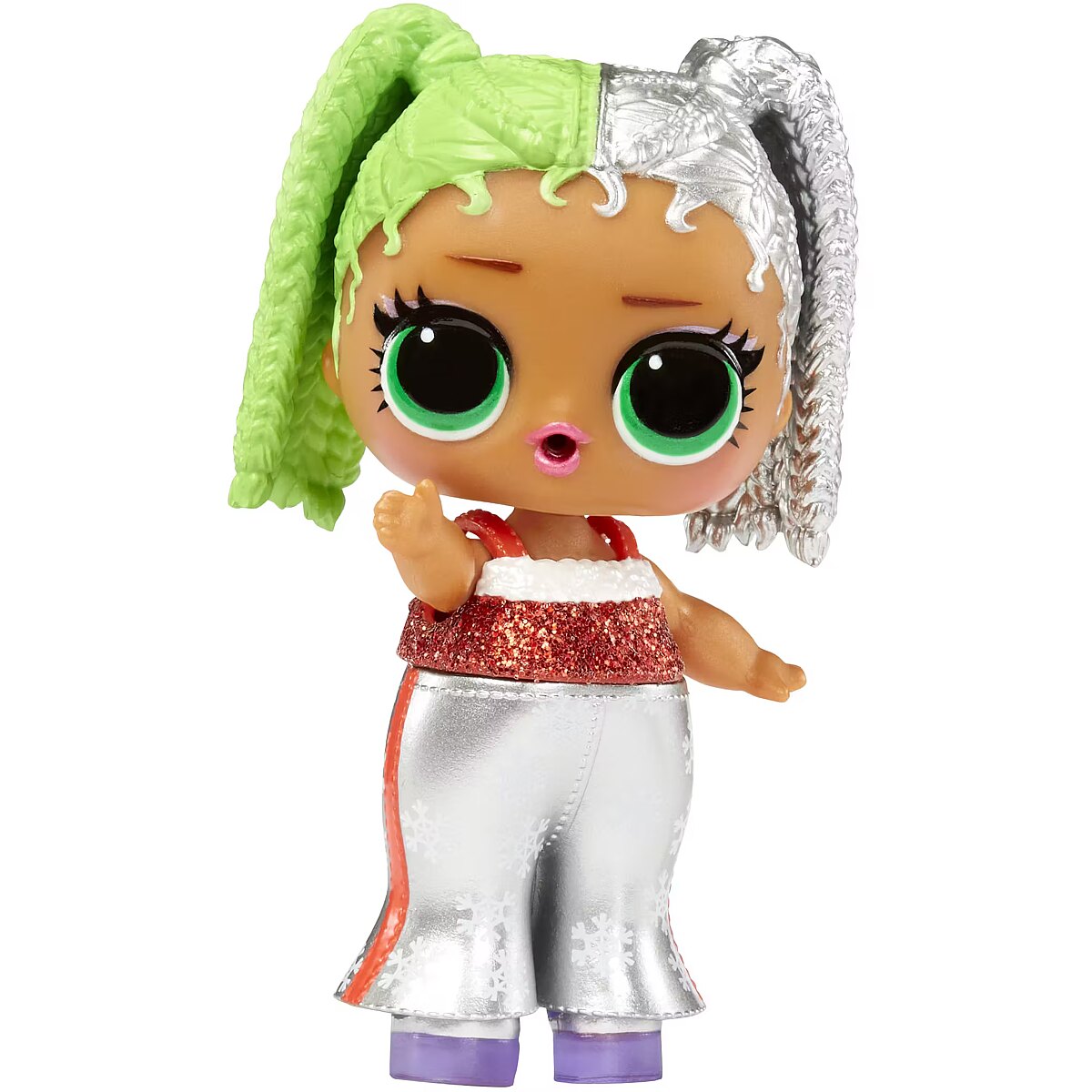 Description - Meet the new L.O.L. SURPRISE Holiday Surpreme doll collection, where you can find one of two adorable dolls, Baking Beauty or Miss Merry.  Miss Merry doll is ready to celebrate her favourite winter holidays in style! She loves to sing Christmas songs, decorate the house with colourful lights and sparkly ornaments, and sip spicy tea in the evening. Miss Merry will be welcoming the New Year dressed up in a fancy dress! She's wearing silver snowflake trousers, a sparkly blouse and a cute headband. The doll will reveal a watery surprise to you. Feed her to find out what kind!