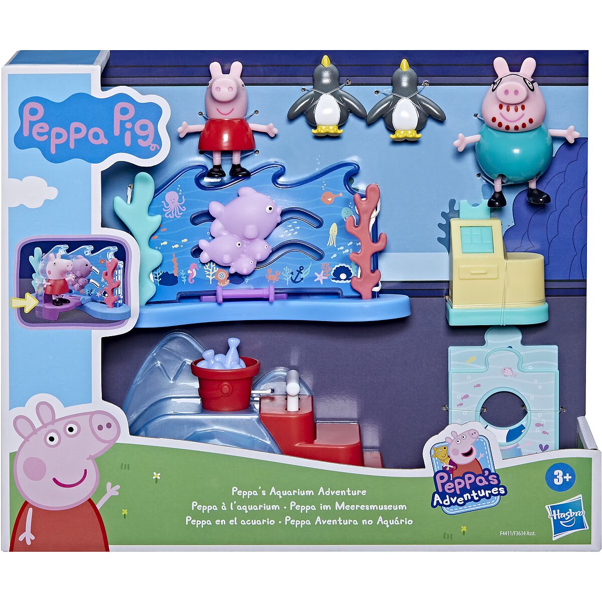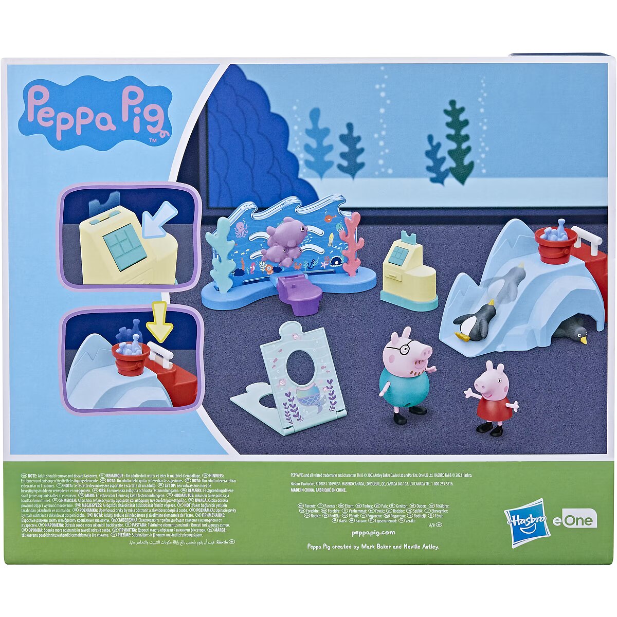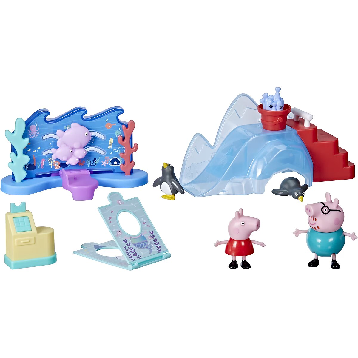 Technical_details - Peppa Pig Peppa at the Sea Museum toy figure Preschoolers and little Peppa Pig fans aged 3 and up can have fun adventures with the Peppa playset at the Maritime Museum. Inspired by a popular location in the Peppa Pig series, it includes poseable Peppa and Papa Pig figures, 2 penguin figures and 4 themed accessories, such as a sea backdrop with a hotspot. If you place a figure on it and move it forward, the fish will swim with you! There's also an ice slide with a bucket that suddenly fills with fish when the handle is pushed down, as well as photo stands for the characters and a cash register that opens with the push of a button. An exciting visit to the Maritime Museum with the well-loved 4-year-old Peppa is about to begin! Type: game character EAN: 5010993929733 Manufacturer number: F44115X0 Series: Peppa Pig Age recommendation: from 36 months Target group: kindergarten children, school children Warnings: Caution: Not suitable for children under 36 months! Warnings: Attention: Danger of suffocation due to small parts!