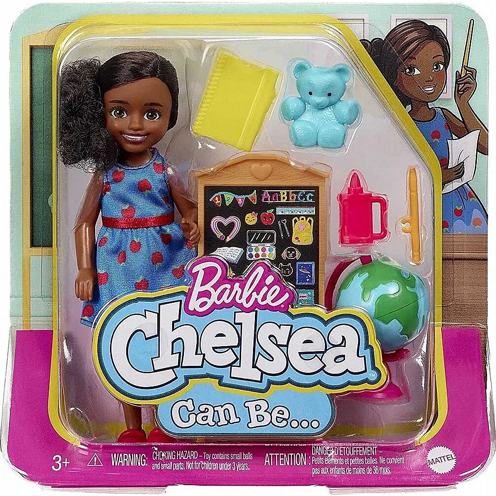 LongSummaryDescription - Barbie Chelsea Can Be… Teacher Doll. Recommended age (min): 3 yr(s). Height: 139.7 mm. Material: Plastic, Fabric