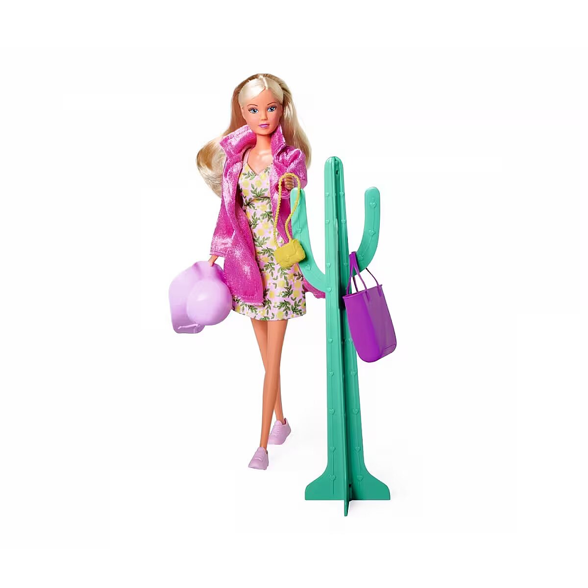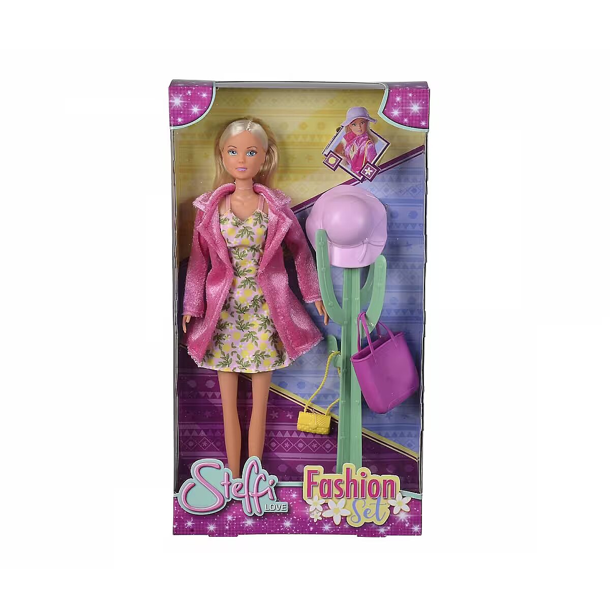 Description - Steffi Love Steffi fashion set Steffi is wearing a pink dress with a floral pattern and has paired it with a soft pink coat. In addition to Steffi, the set also includes a cactus-shaped clothing stand to hold all items such as a shopper, hat, handbag or coat. Steffi Love the joy of playing dress-up: she is a real fashion doll. She loves clothes and fashionable hairstyles. You can dress her according to current trends and give her a unique character.  Avant-garde styling: Steffi is wearing a summer dress with a fancy floral pattern. A beautiful fleece coat and an elegant hat with a brim add to the flair and appeal to any discerning fashionista. Cactus-shaped coat stand: the set includes an interesting stand on which you can hang your coat, hat or the attached 2 handbags. The courage to express yourself: the cactus set presents an unobvious combination of an airy dress with sneakers. The Steffi Love fashion sets give little fashionistas the chance to express themselves through exciting play full of fashionable styles. Steffi is 29 cm tall and is suitable for children aged 3 years and over. The Steffi doll fashion set with cactus-shaped stand is perfect for girls who love fashionable clothes and unusual accessories and are ambitious to explore new areas of fashion. The set includes a unique cactus-shaped clothes rack to hang hats, coats and handbags. It invites you to take a bold approach to playing with fashion to be unique in your own way. Steffi Love sets created to foster imagination and creative initiative. Steffi Love is an iconic German brand with 30 years of tradition, which offers a variety of styles and different variations of sets that enable children to choose a doll according to their interests and dream professions, and develop invaluable independence in the child.