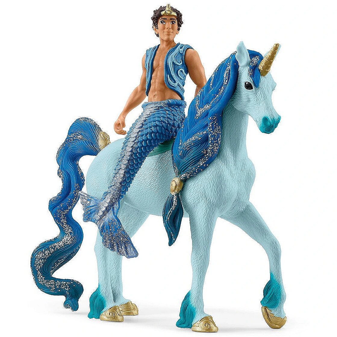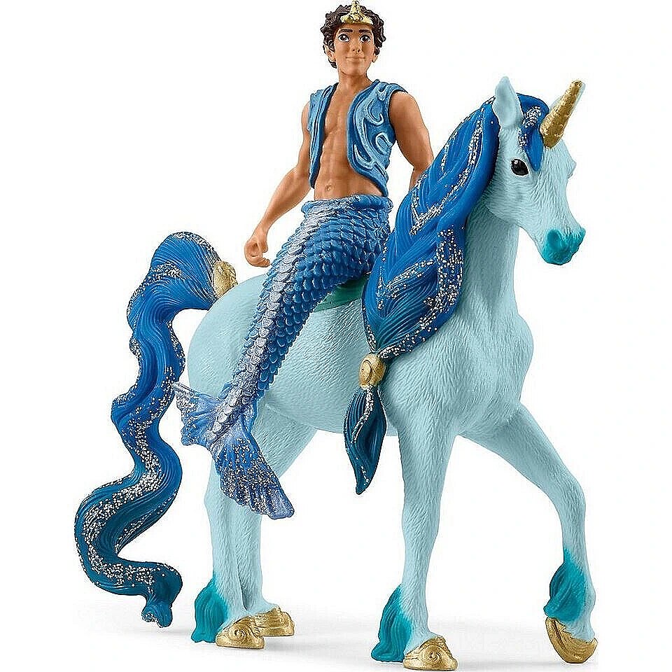 LongDesc - Aryon and his brave Unicorn share a love for the ocean and for all things blue. Together with his magical unicorn friend, Aryon explores the depths of the oceans...and your dark, mysterious toybox. What treasures will they find beneath the sea? Take the plunge and invite this merman and unicorn to join your toy collection.