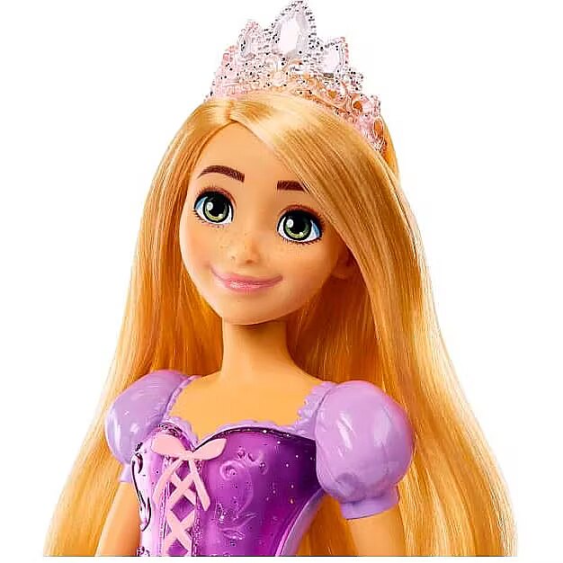 Description - Introducing a Rapunzel doll inspired by the colourful, creative princess from Disney's Tangled. This bend point doll comes with a shimmering outfit and accessories such as shoes and a tiara. Dressed in her iconic style from the movie Rapunzel is ready for any adventure! The doll does not stand alone. Colours and decorative elements may vary. Inspired by the character from Disney's much-loved animated film Tangled, Rapunzel doll is ready to follow her dreams. The bend point doll is dressed in her iconic style from the film, including removable shoes and tiara. The outfit consists of a glitter top and removable skirt with a design unique to Rapunzel. This adorable Disney princess has long hair for fun combing and styling. A perfect gift for children to recreate their favourite moments from the film or make up their own stories. Fans can collect all the Disney Princess dolls for countless magical adventures. Other sets sold separately subject to availability