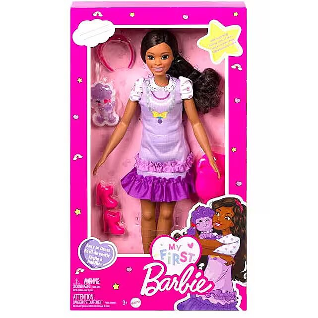 LongDesc - Introducing My First Barbie, a collection designed for preschoolers! This sweet line features larger dolls that are easy-to-dress and have poseable, soft-touch bodies. From friendship to fashion, kids can create countless stories with these adorable dolls! Each sold separately, subject to availability. Barbie dolls cannot stand alone. Colours and decorations may vary.