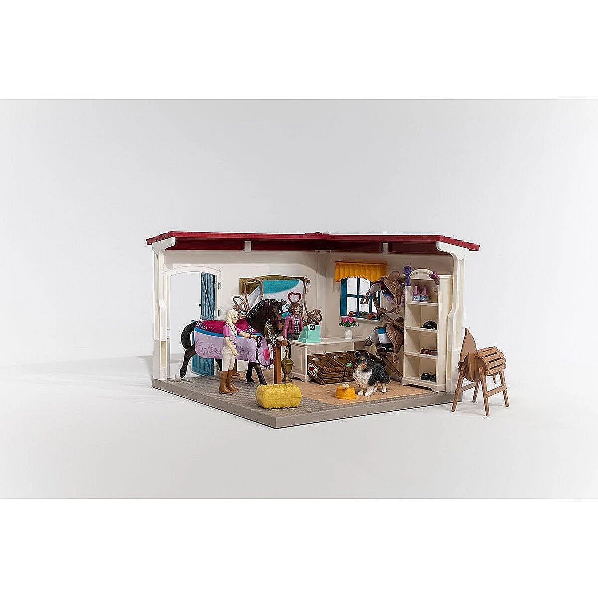 LongDesc - Ding-dong! Customers are arriving at the schleich® HORSE CLUB riding store. What special treat will you pick up for your horse? Horse feed, saddles, brushes...this tack store has everything! There's even a friendly dog to help you find what you need. Load up your pack, then it's time to head back to the stables...sorry, you can't escape your stable chores by shopping all day.
