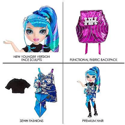 Description - Rainbow High inspires creativity! Go back in time and meet your favorite students before they became friends and followed their creative dreams to Rainbow High. Each themed playset comes with a complete doll outfit, doll with new younger face-sculpts, and a soft vinyl backpack to carry their school essentials. This playset will give kids endless joy and imaginative storytelling entertainment.