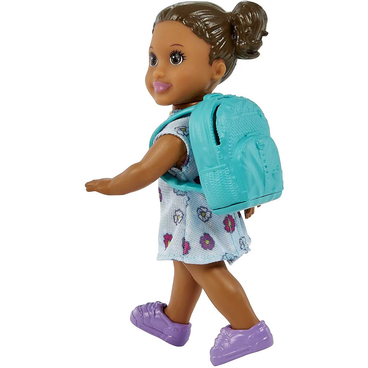LongDesc - Explore a world of learning fun with the Barbie Teacher playset that lets kids explore their career aspirations. Barbie doll (blonde/11.5 in) wears an alphabet letter print dress with pink strappy shoes plus an adorable top-bun hairdo and is ready to teach! The playset comes with a flipping board that offers two lessons, a backpack, a toddler doll (brunette), toddler desk, scissors, student sheet and a drink to bring the storytelling to life. There's even a classroom pet turtle! And, with her laptop, Barbie doll is prepared to help students virtually, too. Kids will love trying on the teaching career hat and exploring their dream aspirations. Dolls cannot stand alone. Colours and decorations may vary. For ages 3 and up.
