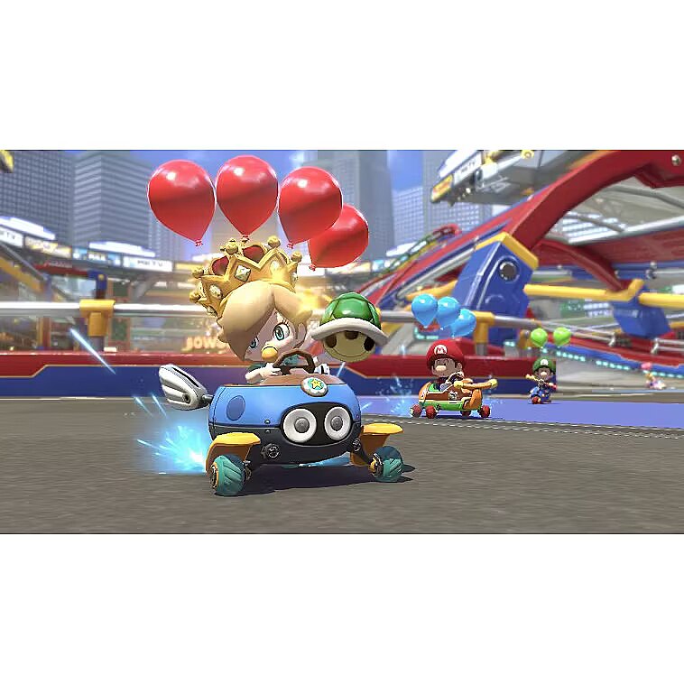 LongDesc - With Nintendo Switch, fans can enjoy the definitive version of Mario Kart 8 anywhere, anytime, even with up to 8 friends in local wireless multiplayer.All your favourite tracks and characters return from the Wii U version, plus all DLC tracks and characters, and new characters join the roster, too. Plus, Battle Mode has been revamped.Mario Kart 8 DeluxeWith Nintendo Switch, fans can enjoy the definitive version of Mario Kart 8 anywhere, anytime, even with up to 8 friends in local wireless multiplayer.All your favourite tracks and characters return from the Wii U version, plus all DLC tracks and characters, and new characters join the roster, too: Inkling Boy and Inkling Girl from Splatoon, King Boo, Dry Bones, and Bowser Jr.!Plus, Battle Mode has been revamped and includes Balloon Battle and Bob-omb Blast, with all-new courses such as Urchin Underpass and Battle Stadium, and returning ones like (GCN) Luigi’s Mansion and (SNES) Battle Course 1.Players can now carry two items at a time, including new items returning from previous Mario Kart games such as Boo, the item-stealing ghost, and the Feather, which gives you a high jump in battle mode.Players can even choose to use a new Smart Steering feature which makes driving and staying on the track easy for novice players and kids, even at 200cc. Play in TV mode in up to 1080p.