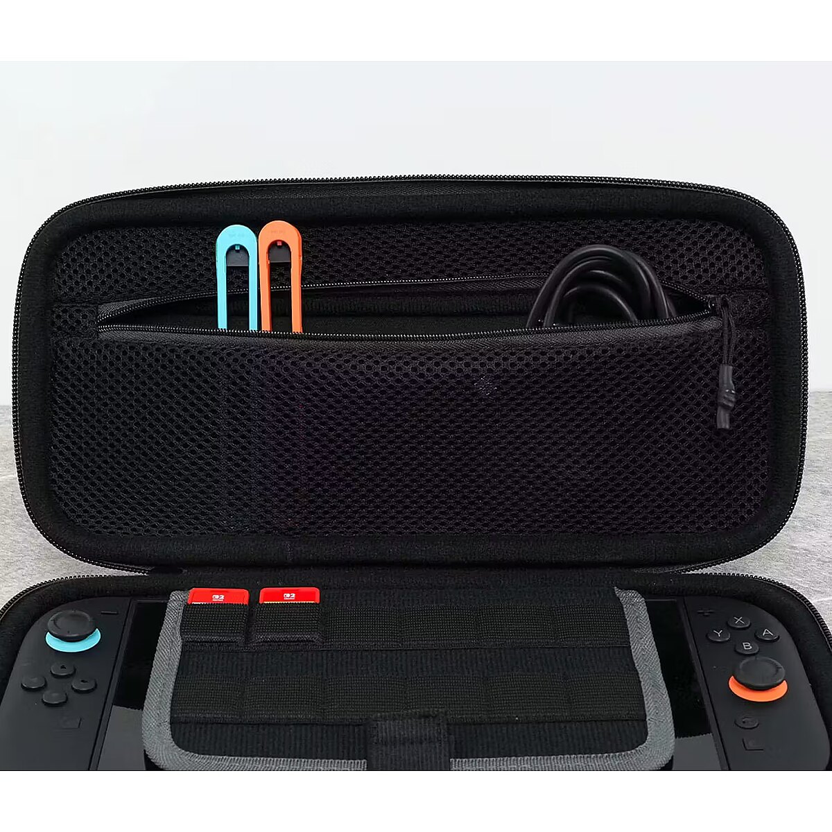 Mesh zippered pocket for small accessories on the top case, with a molded bottom compartment for your dock, AC adapter, extra Joy-Con Controllers, and a wireless controller. Travel-Ready Portability