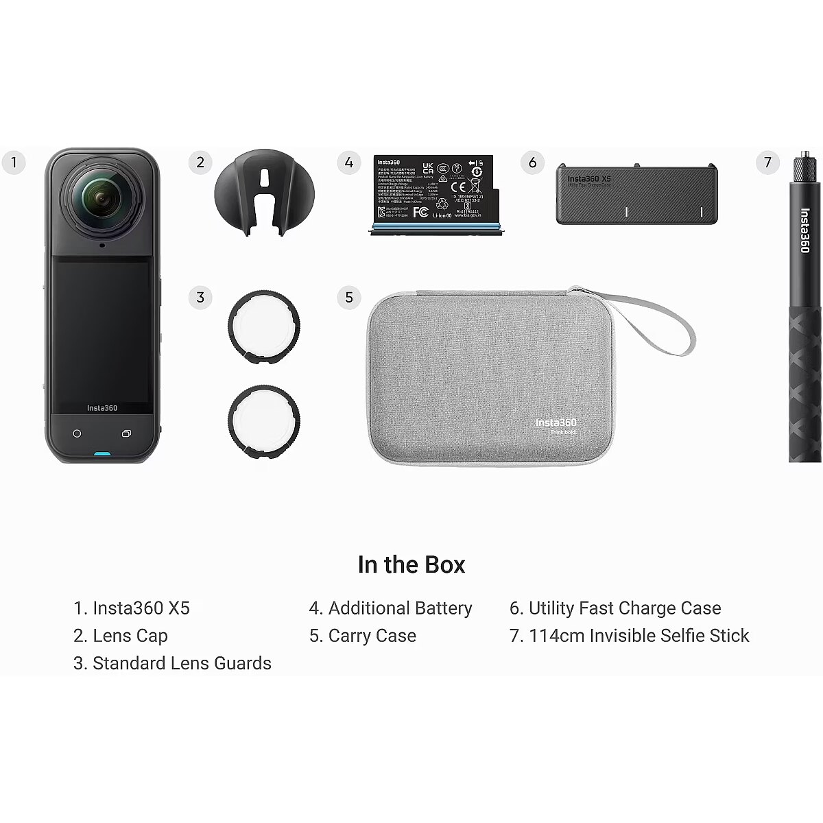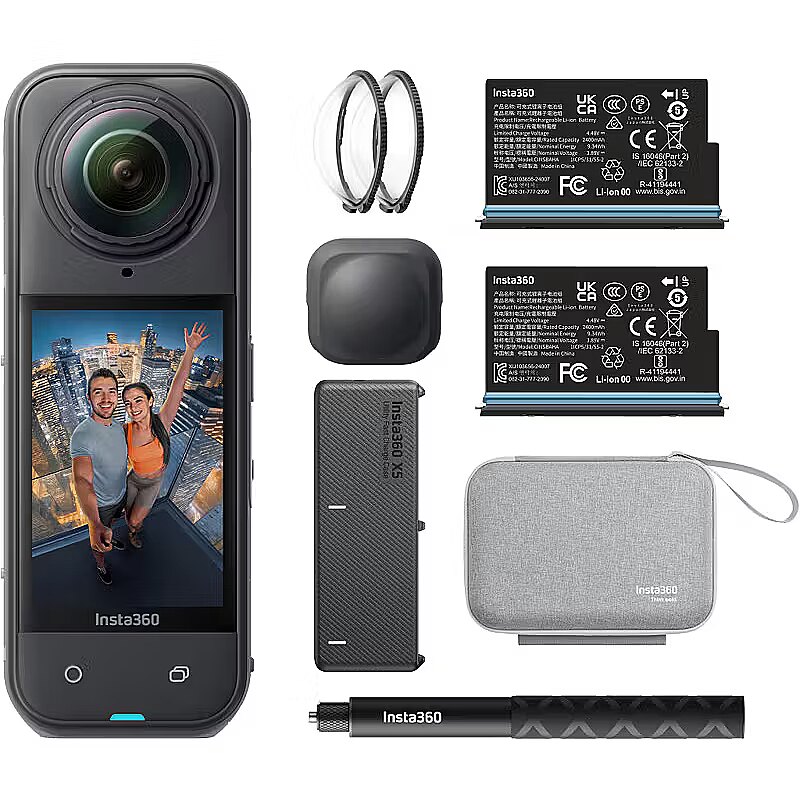 Say goodbye to distortion with just one tap, for a more natural perspective. Perfect for landscapes or shots with your friends! Your creativity, unleashed Bullet Time. Spin your X5 and get that classic cinematic shot in slow-mo. Starlapse. Why just look at the night sky? Capture star trails and epic nightscapes with angles no other camera can match. Timeshift. Hyperlapse, but cranked to 11. Speed up, slow down, and throw your viewers into the action with fluid, dynamic motion. Timelapse. Time flies... and now you can capture it. From sunrises to cityscapes, X5 keeps your shots steady and stunning. Essentials Bundle set includes: