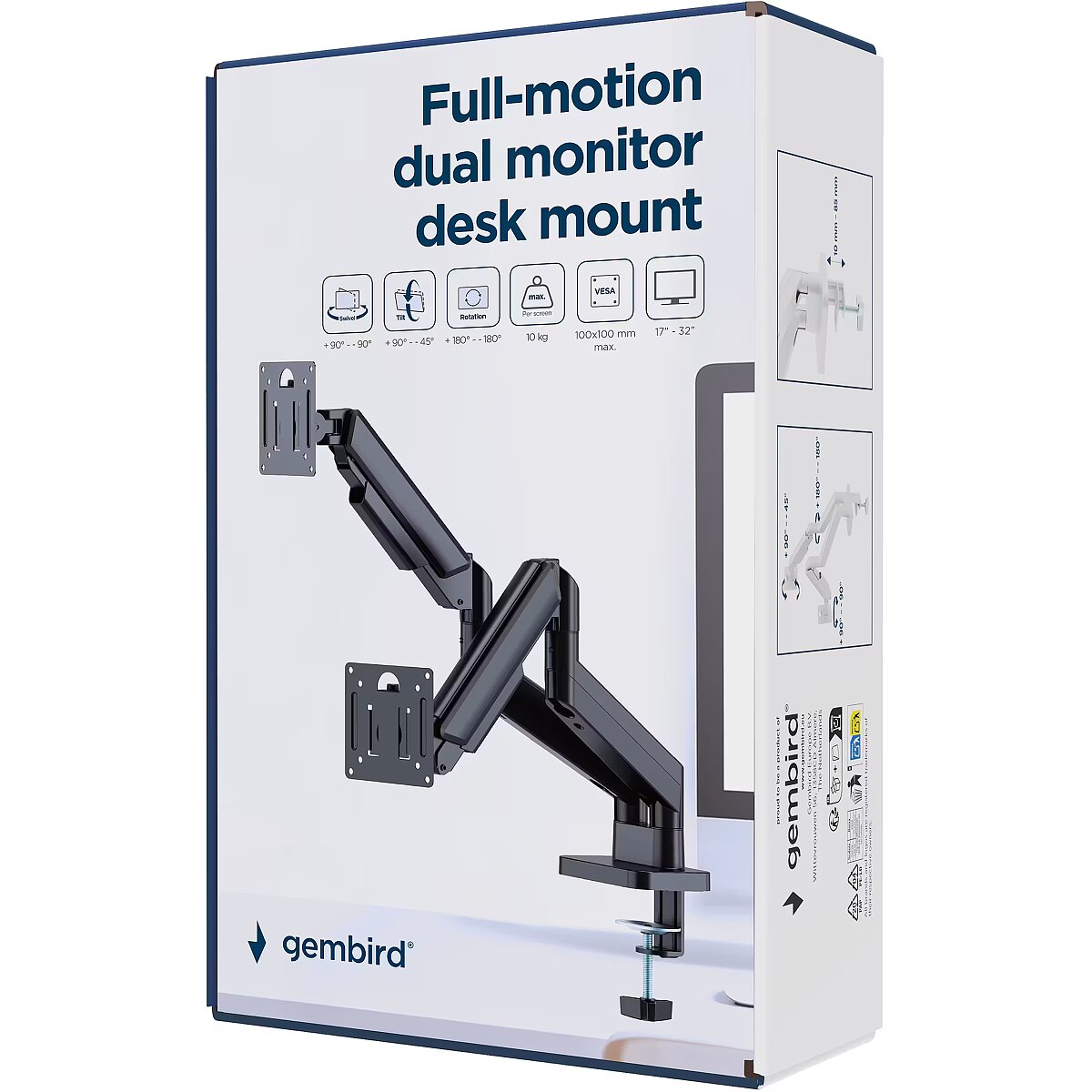 Gembird Desk mounted adjustable double monitor arm, 17-32"