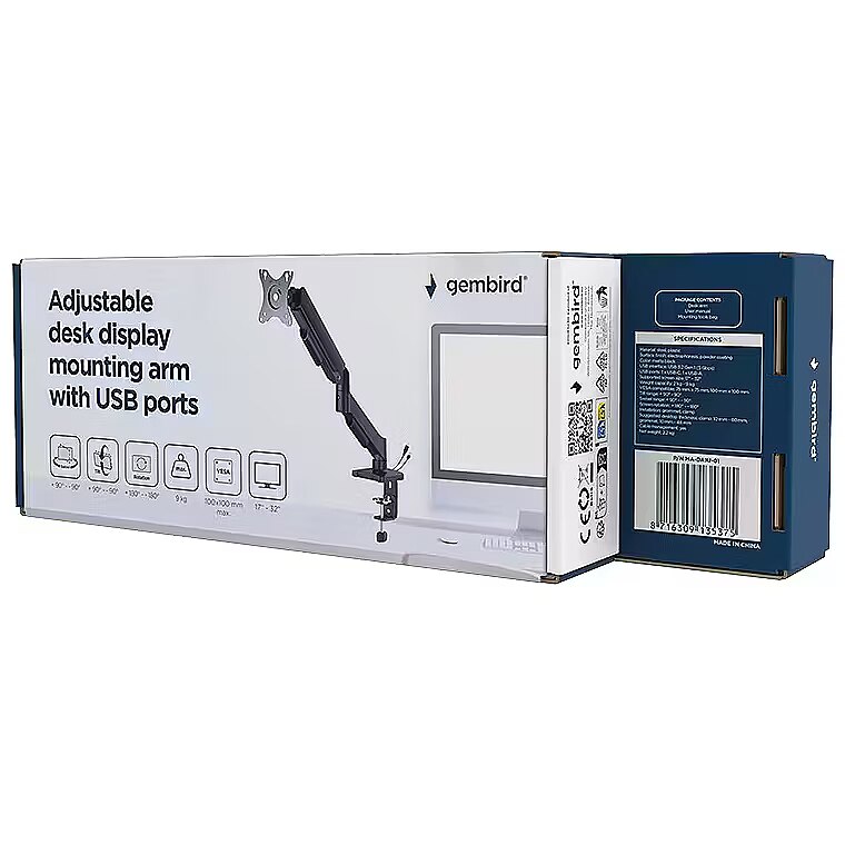 productName - Gembird MA-DA1U-01 Adjustable desk display mounting arm with USB ports, 17”-32”, black