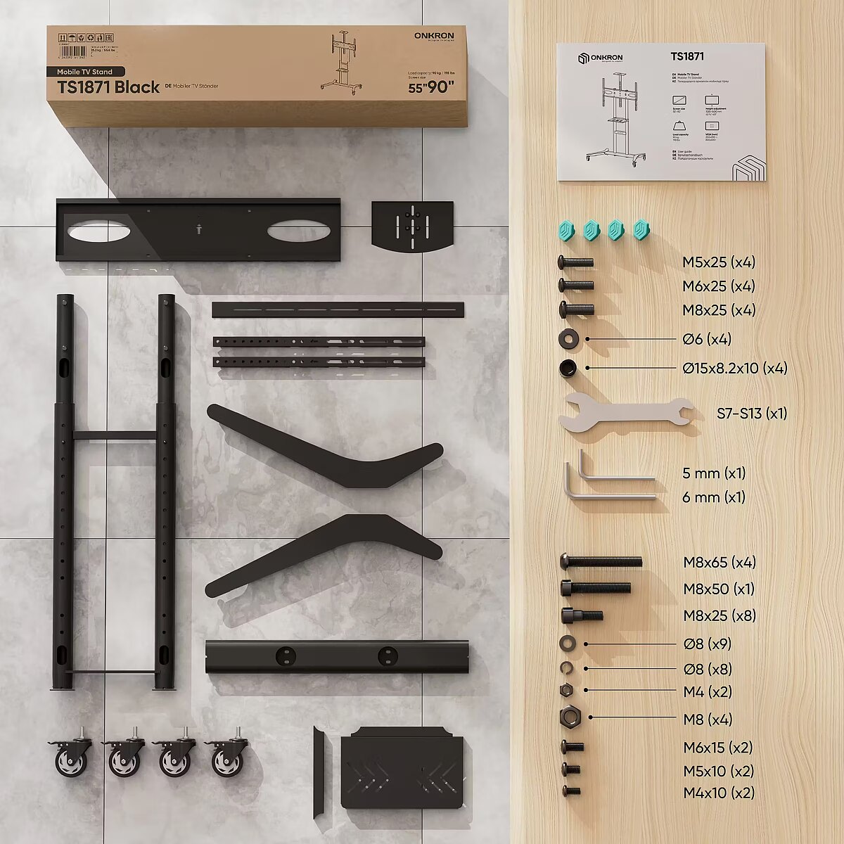 Description - ONKRON Mobile Stand for 55"- 90" screen, max 75 kg, VESA up to 800x600