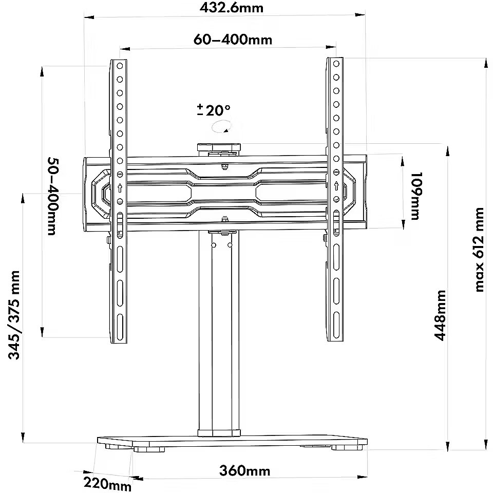 productName - Maclean universal TV stand, for RTV cabinet, stand, max. 35 kg, 20 degree rotation, for 32-55" TV, MC-132