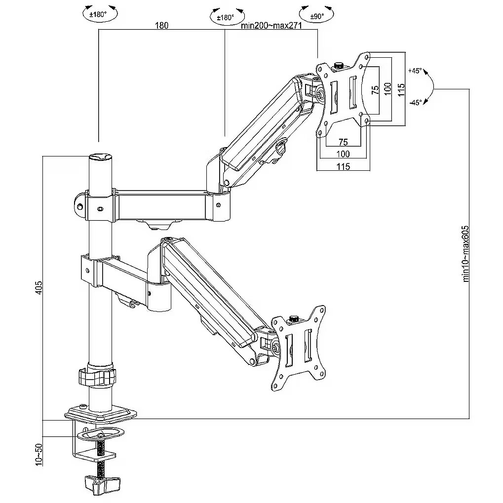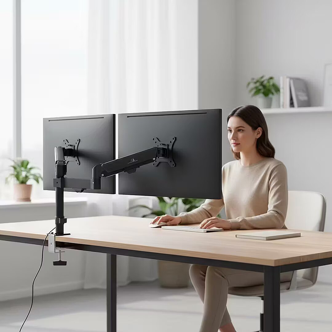 Maclean Dual monitor mount, gas spring, 17-32"
