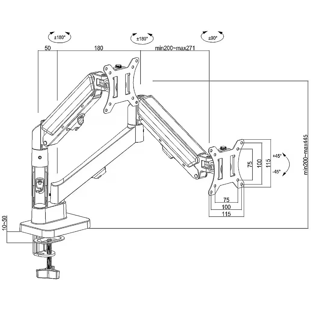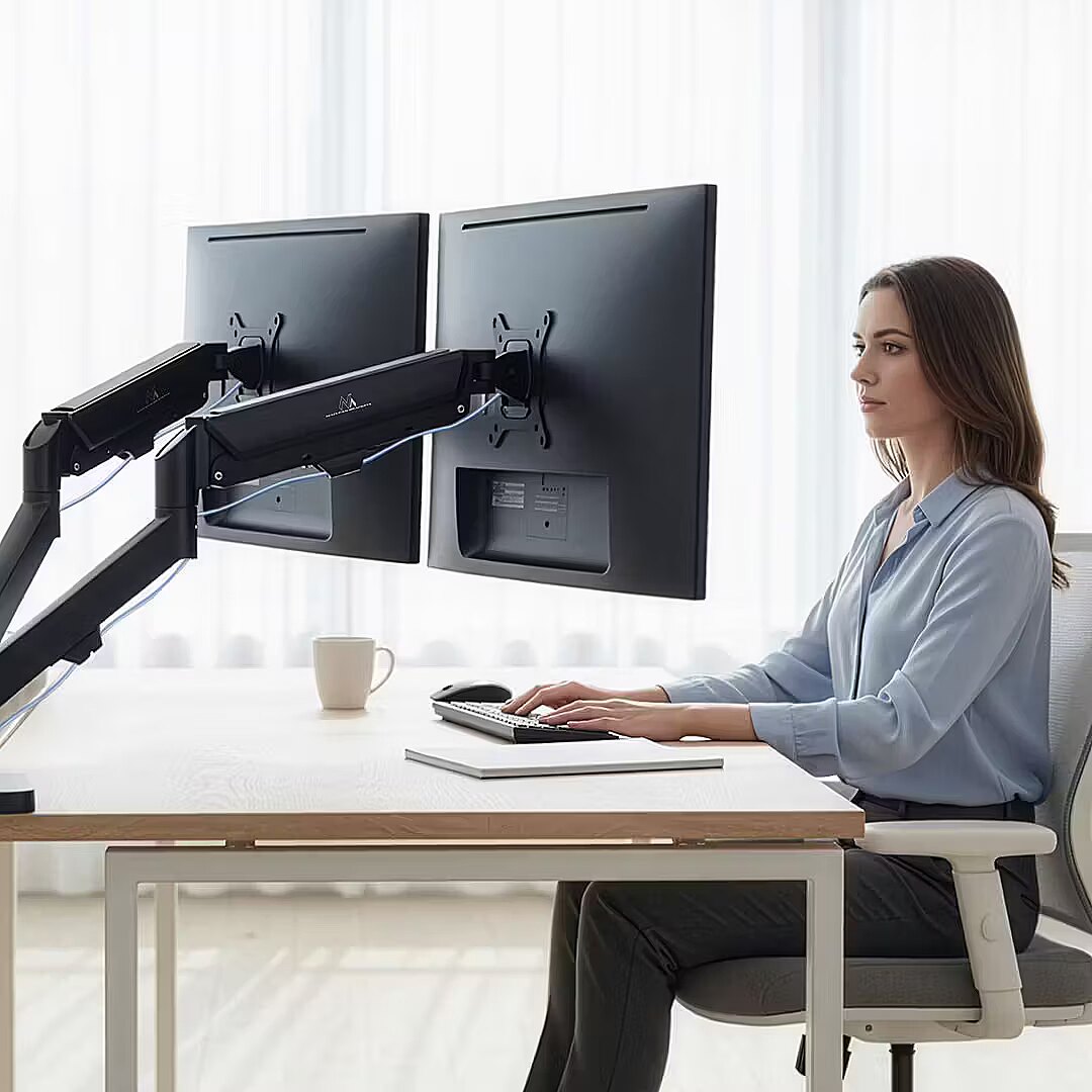 productName - Maclean 2 monitor mount, gas spring, 17"-32", 2-10kg, black, MC-134