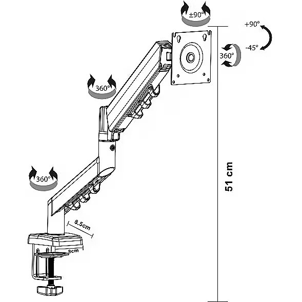 name - Monitor mount gas spring TB-MG3 up to 26 inches 10kg VESA 100x100