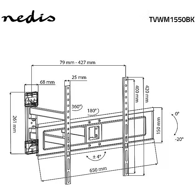 Nedis Full Motion TV Wall Mount, 37-70"