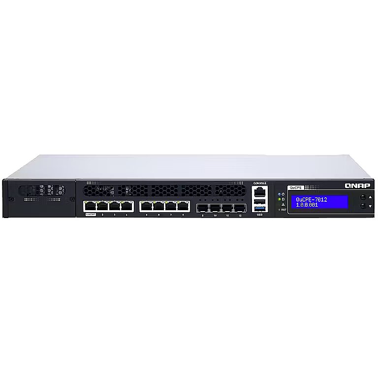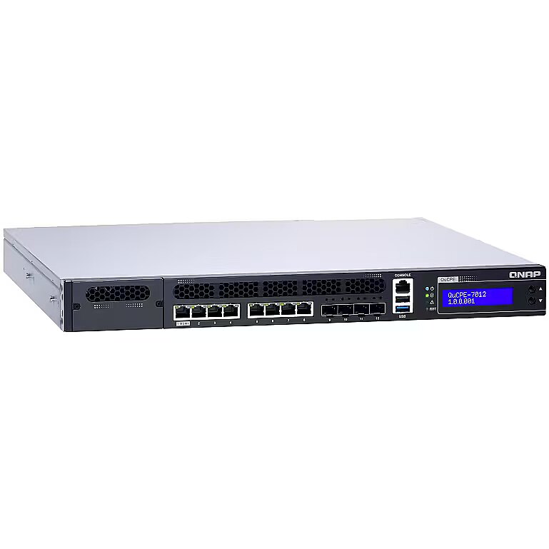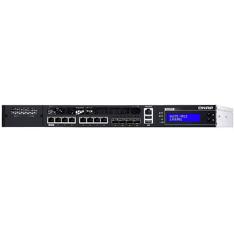 Name - QNAP QuCPE-7012-D2146NT-32G Intel Xeon D-2146NT 8x2.5GbE RJ45 ports and 4x10GbE SFP+ ports 1x network module 1x PCIe Gen3 x8