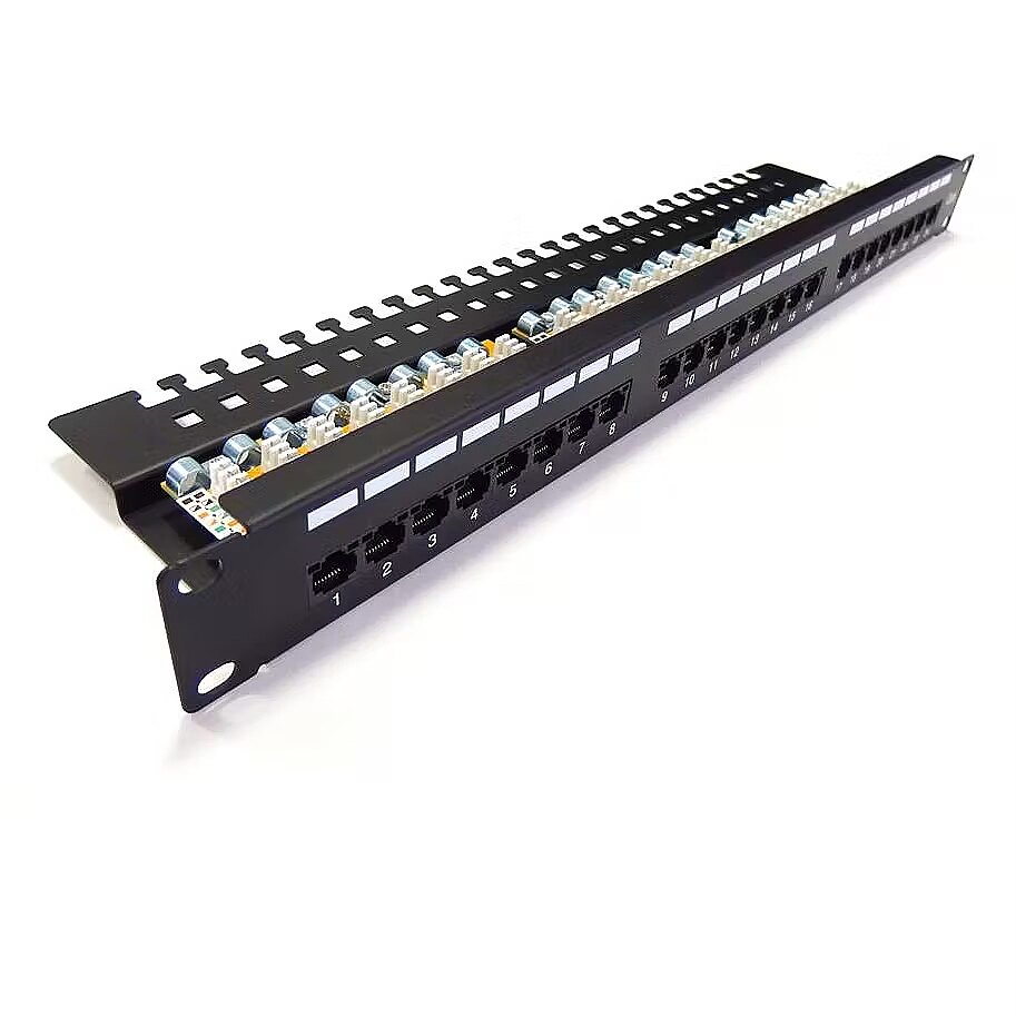 Description - Patch panel 19'' 24x RJ45, LSA level, cat.6, unshielded, 1U, cable guide, labeling fields, black