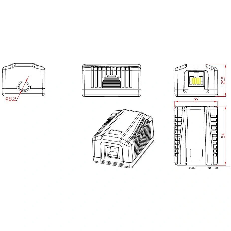 Description - CAT5E UTP single port surface mount box Single port surface mount box assembled with keystone jack Includes mounting screws, adhesive tape
