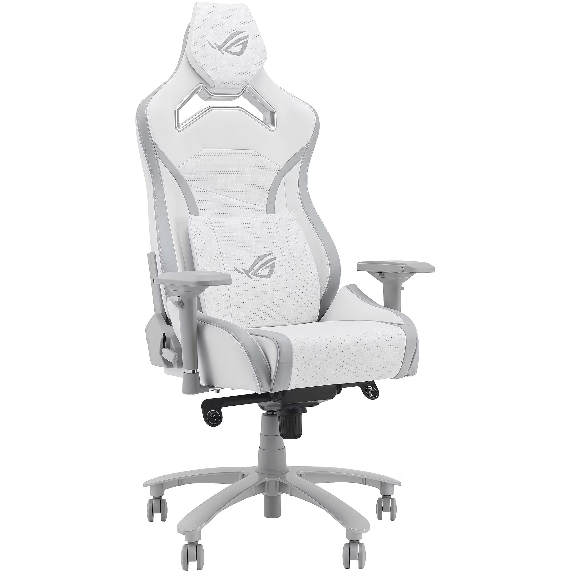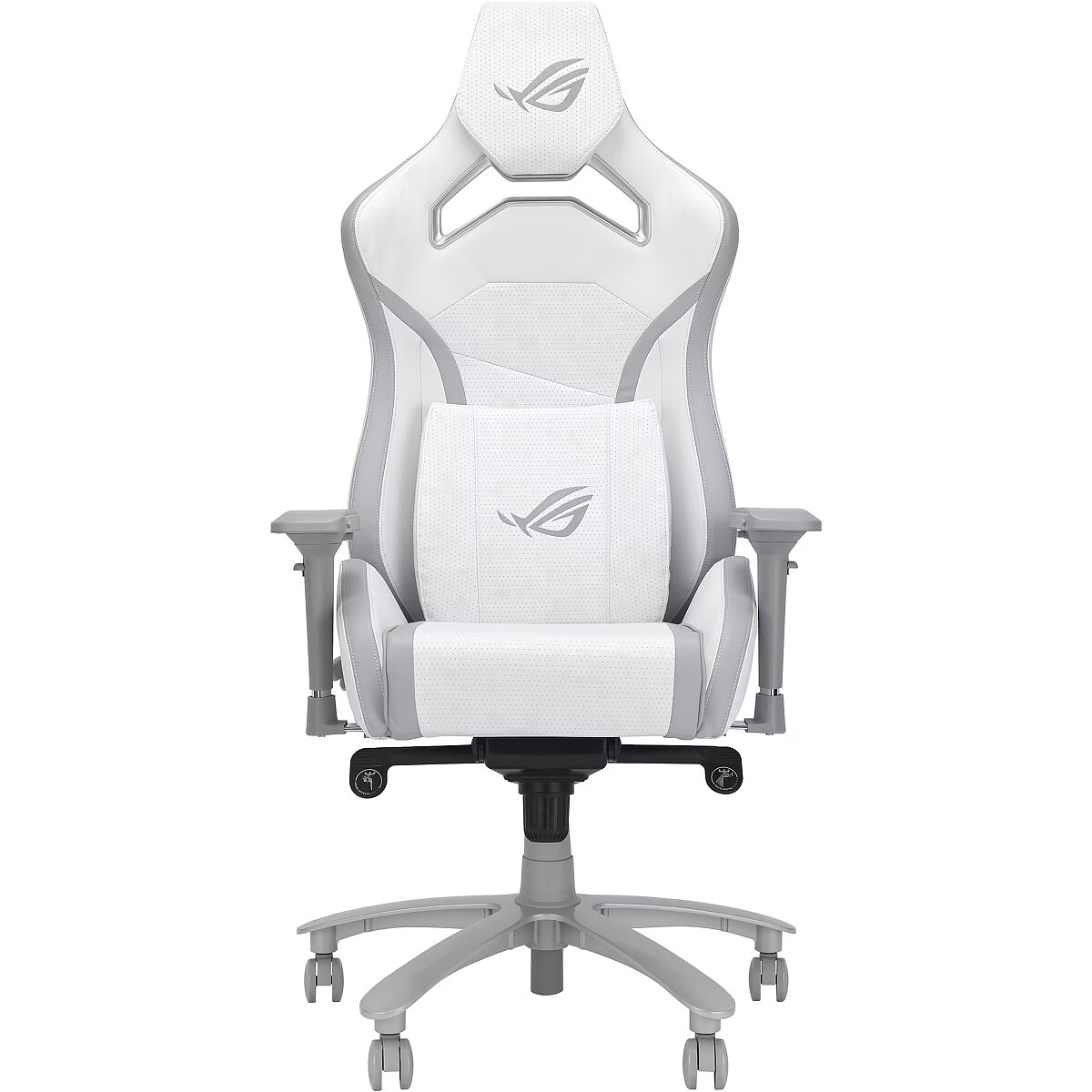 Description - ROG Chariot X CORE SL301CW ROG Chariot X Core gaming chair in racing-car style, featuring an adjustable high-density foam headrest, memory-foam lumbar support, 4D armrests, tilt mechanism, durable class 4 gas lift, and durable premium PU leather for a premium gaming experience. Ergonomic design with high-density foam headrest and memory-foam lumbar cushion for ultimate comfort. 4D-adjustable armrest and up to 155°-recline backrest, plus articulated tilt mechanism to increase gaming immersion. The Premium PU leather offers improved abrasion resistance and lasts for more than 5 years. Convenient rear hook infused with ROGs gaming style and spirit Constructed from tactile leatherette and high-density, cold-cure foam for superb durability. Superior safety provided by all-steel frame, class 4 gas lift, durable PU casters and aluminum-alloy, five-star base.