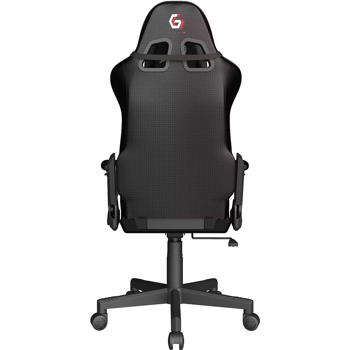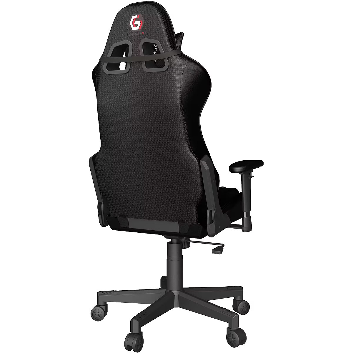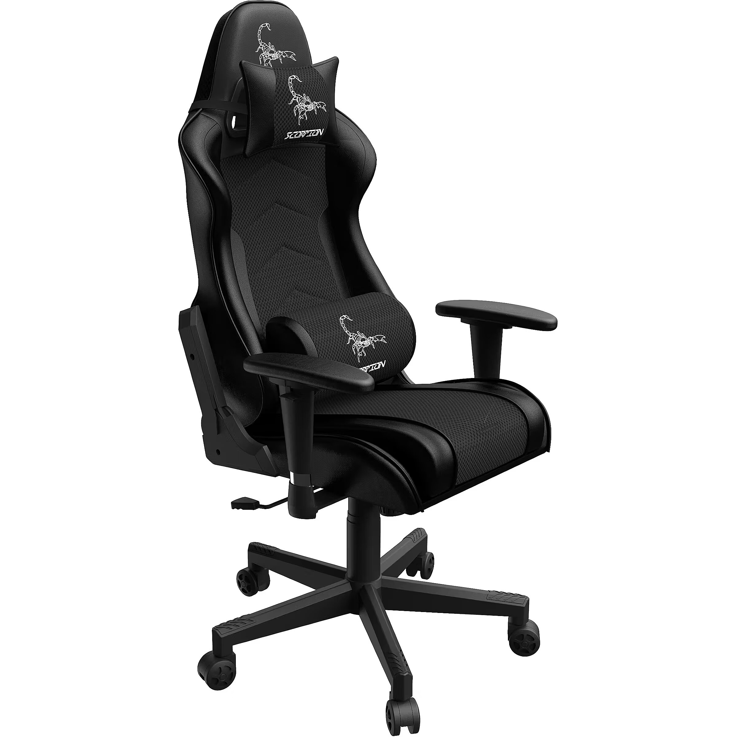 Description - Krzesło gamingowe Scorpion czarne Krzesło komputerowe z PVC Mocna nylonowa podstawa, gąbka w oparciu i zagłówku oraz formowana pianka wewnątrz siedziska Wentylowane siateczkowe siedzisko i przód Regulowany podłokietnik 2D Mechanizm uchylny, podnośnik gazowy i koła PU