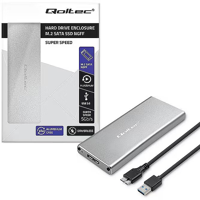 Qoltec Enclosure M.2 SSD drive SATA,NGFF,USB 3.0,2TB