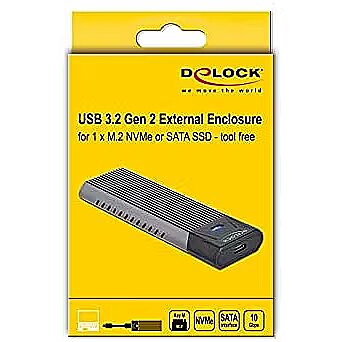 Name - DeLOCK external USB Type-C combo enclosure for M.2 NVMe PCIe or SATA SSD, drive enclosure
